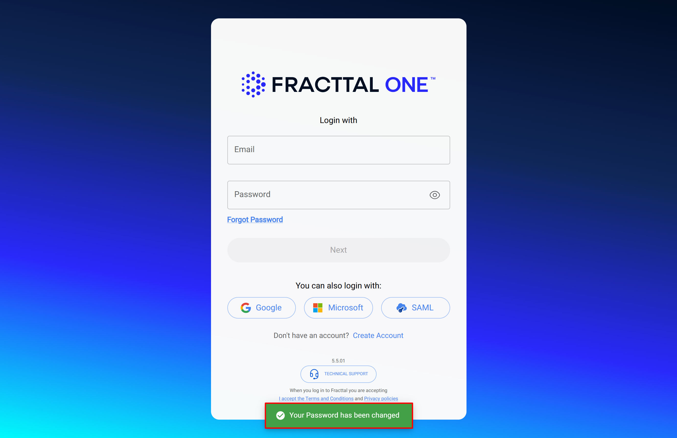 A confirmation message will appear at the bottom right indicating that "your password has been successfully changed". Additionally, you will receive a confirmation email with the subject "Password Reset".