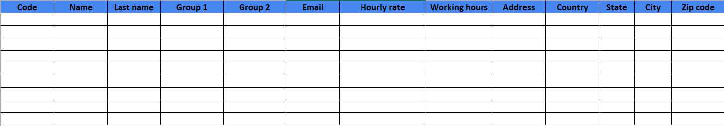 This template contains columns (fields) that must match the attributes in the human resource records on the platform.