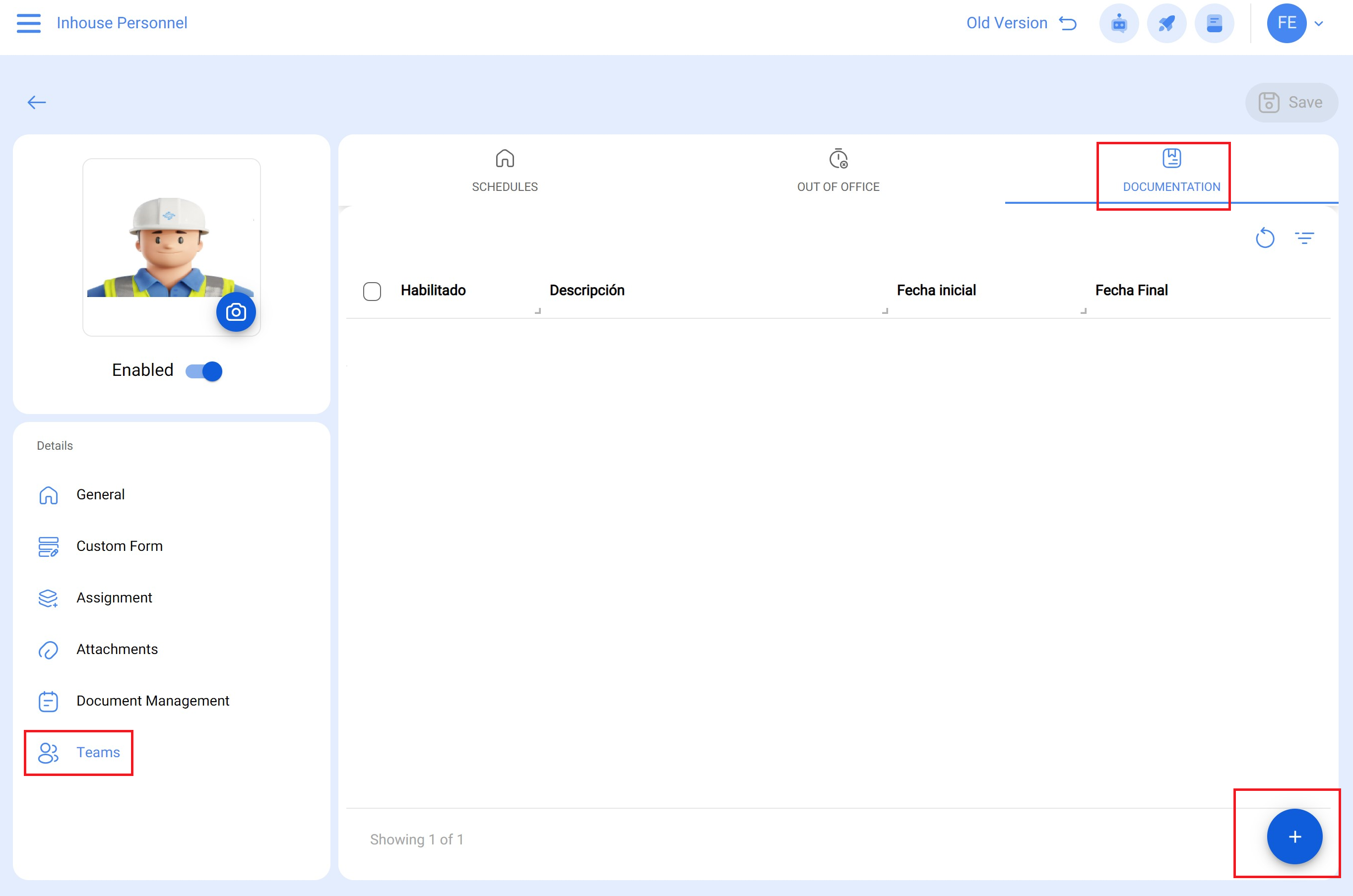 In contrast to the document management in other modules, teams documentation generates restrictions when carrying out activities so that if the inhouse personnel has an expired document, they won’t be able to do the task until the document is renewed. For example, it can be used for documentation that is necessary for performing certain activities.