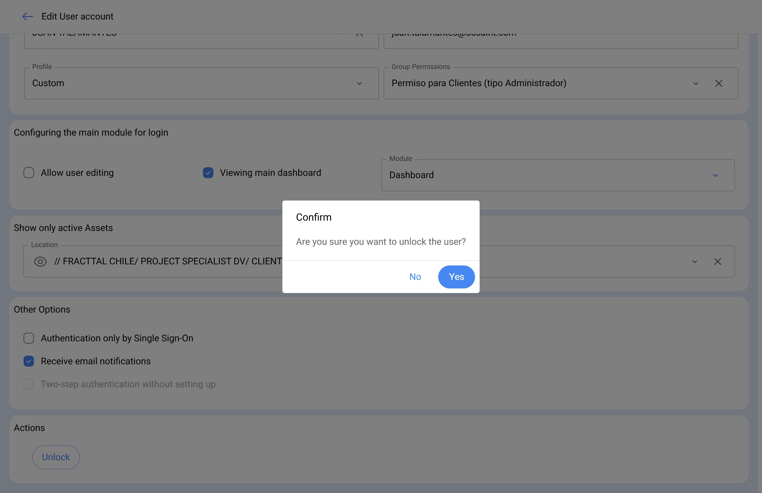 To unlock a user account in Fracttal, you need to have an administrator account. With this type of access, you can unlock accounts that have been locked after multiple failed login attempts with an incorrect password.