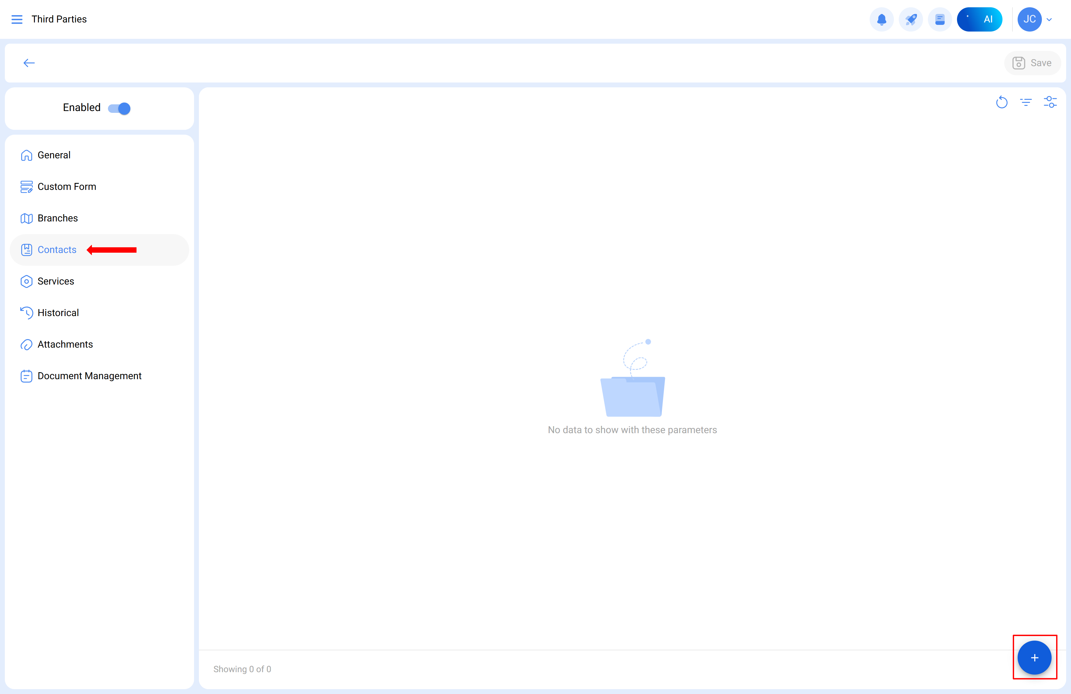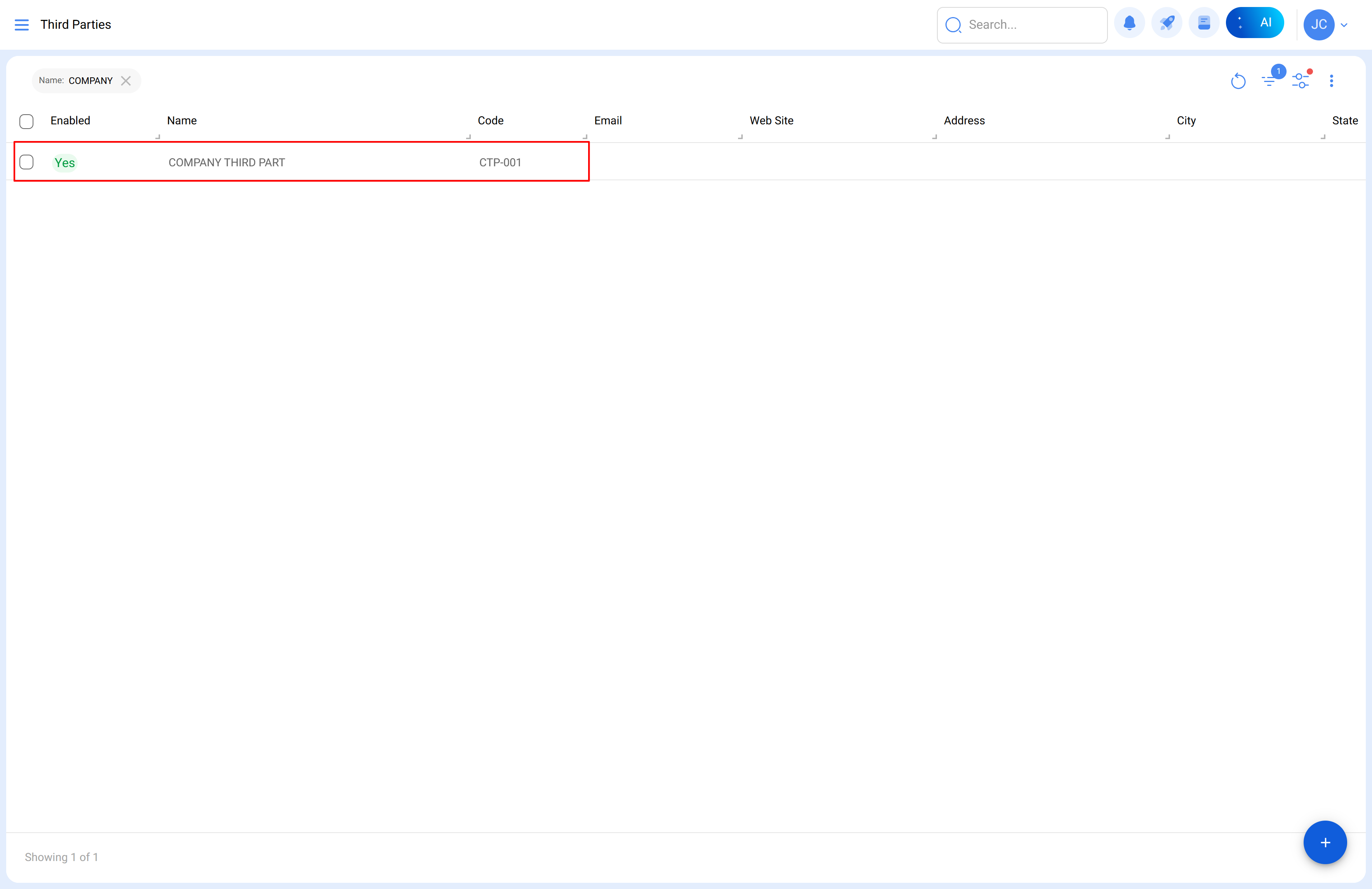 1. Go to "Third Parties" in the Catalogs menu and select the corresponding company.