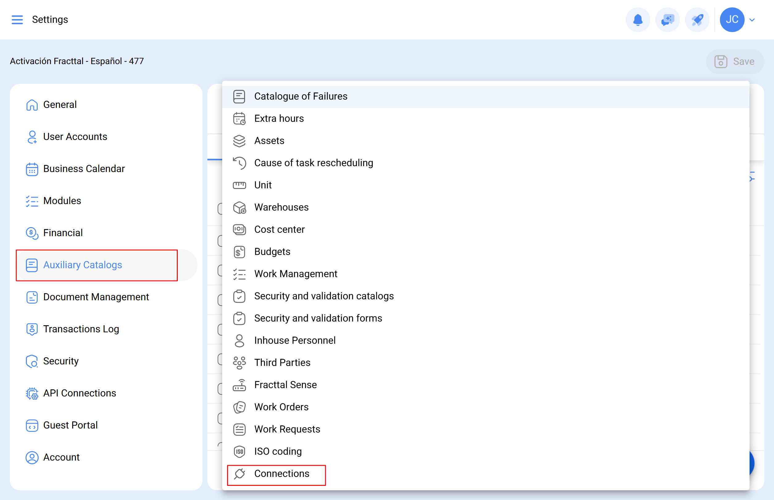 In Fracttal One, go to Settings > Connections.