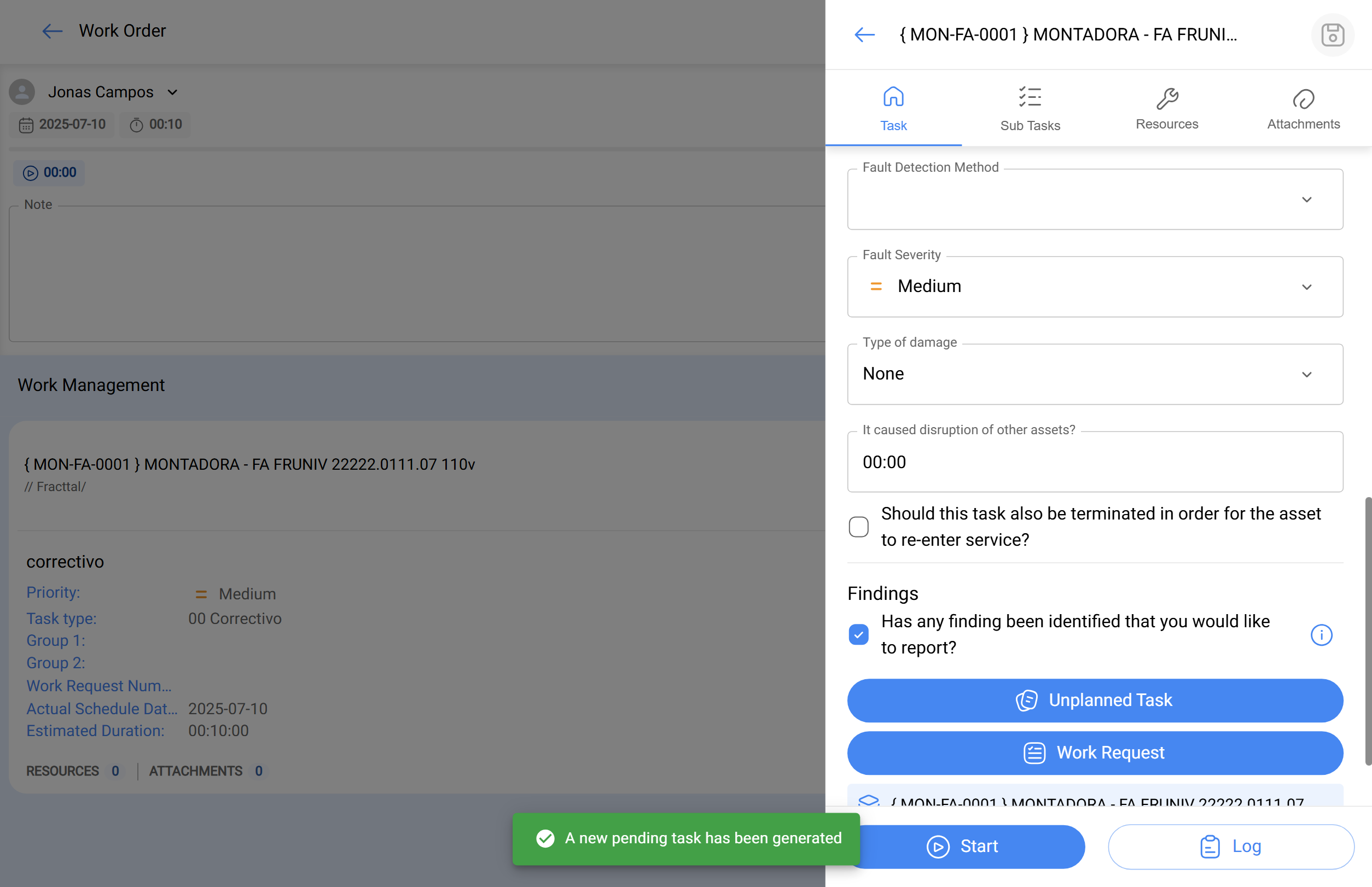 Create an Unplanned Task: Ideal for actions that need to be executed immediately as part of the same Work Order.