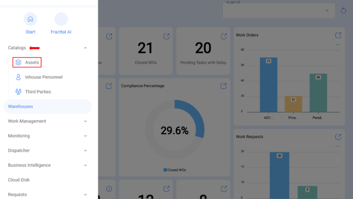 From the main menu, click on "Catalogs" > “Assets” to enter the module.