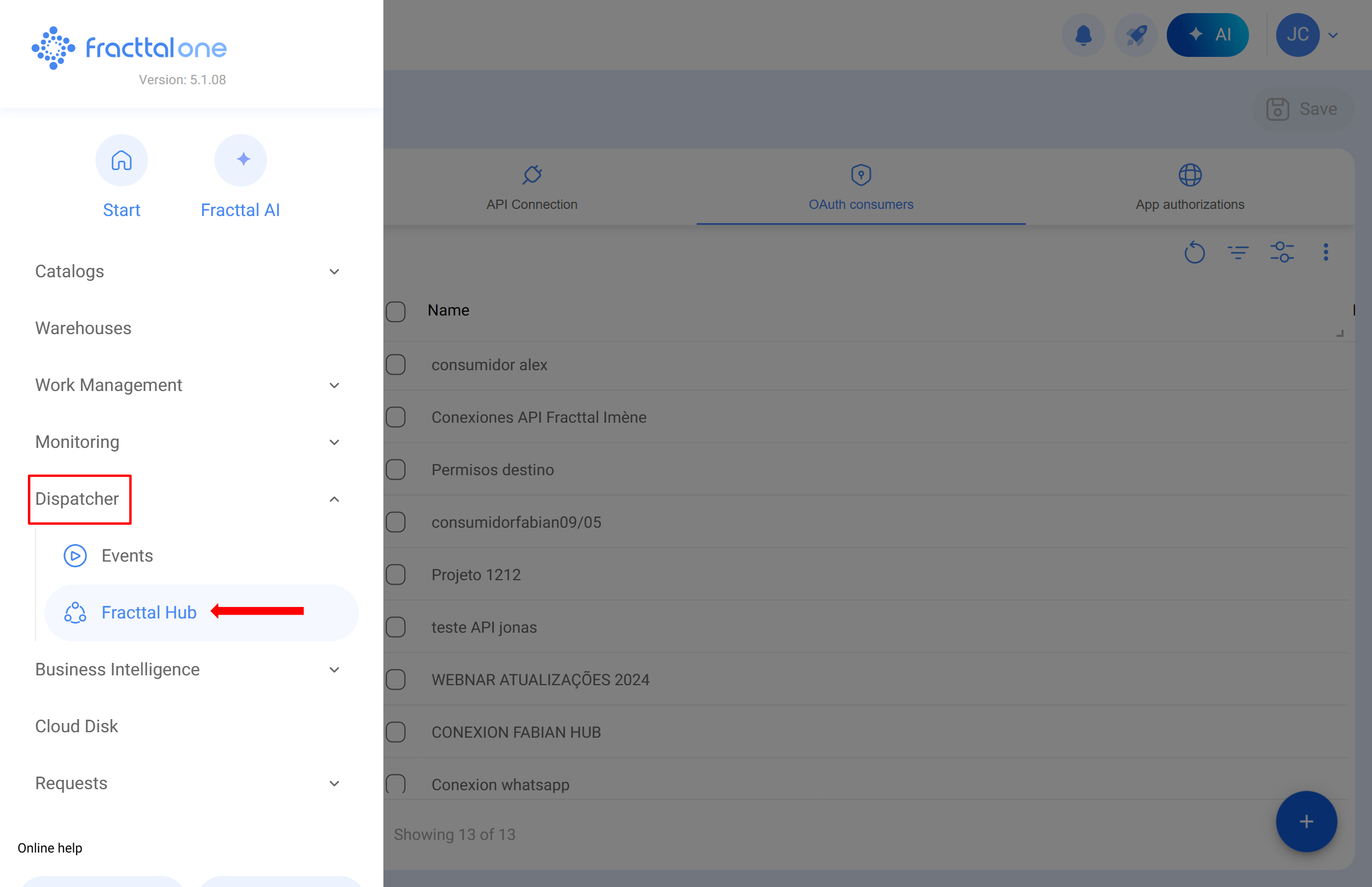 In the main menu, navigate to Automator and select Fracttal Hub.