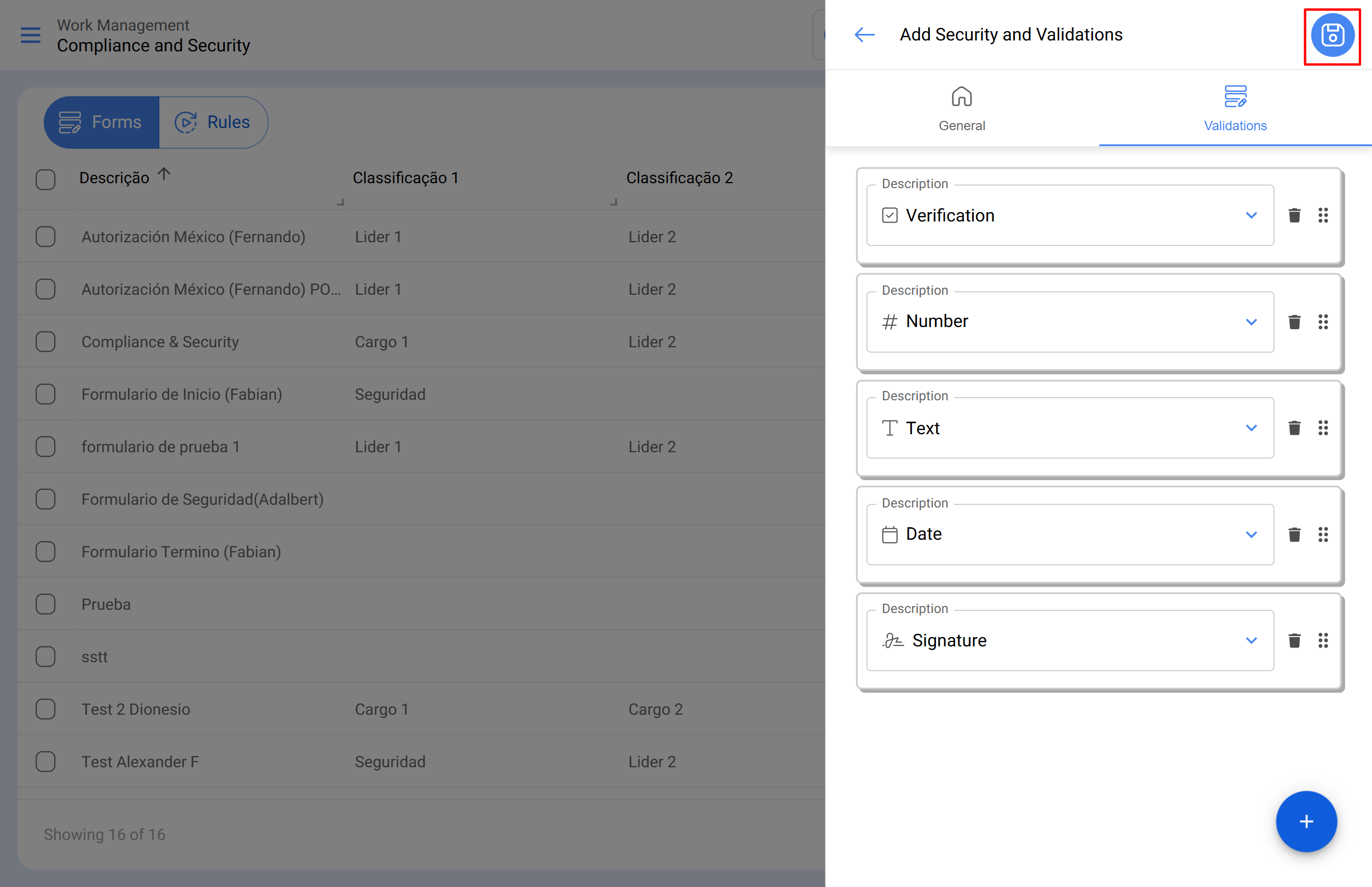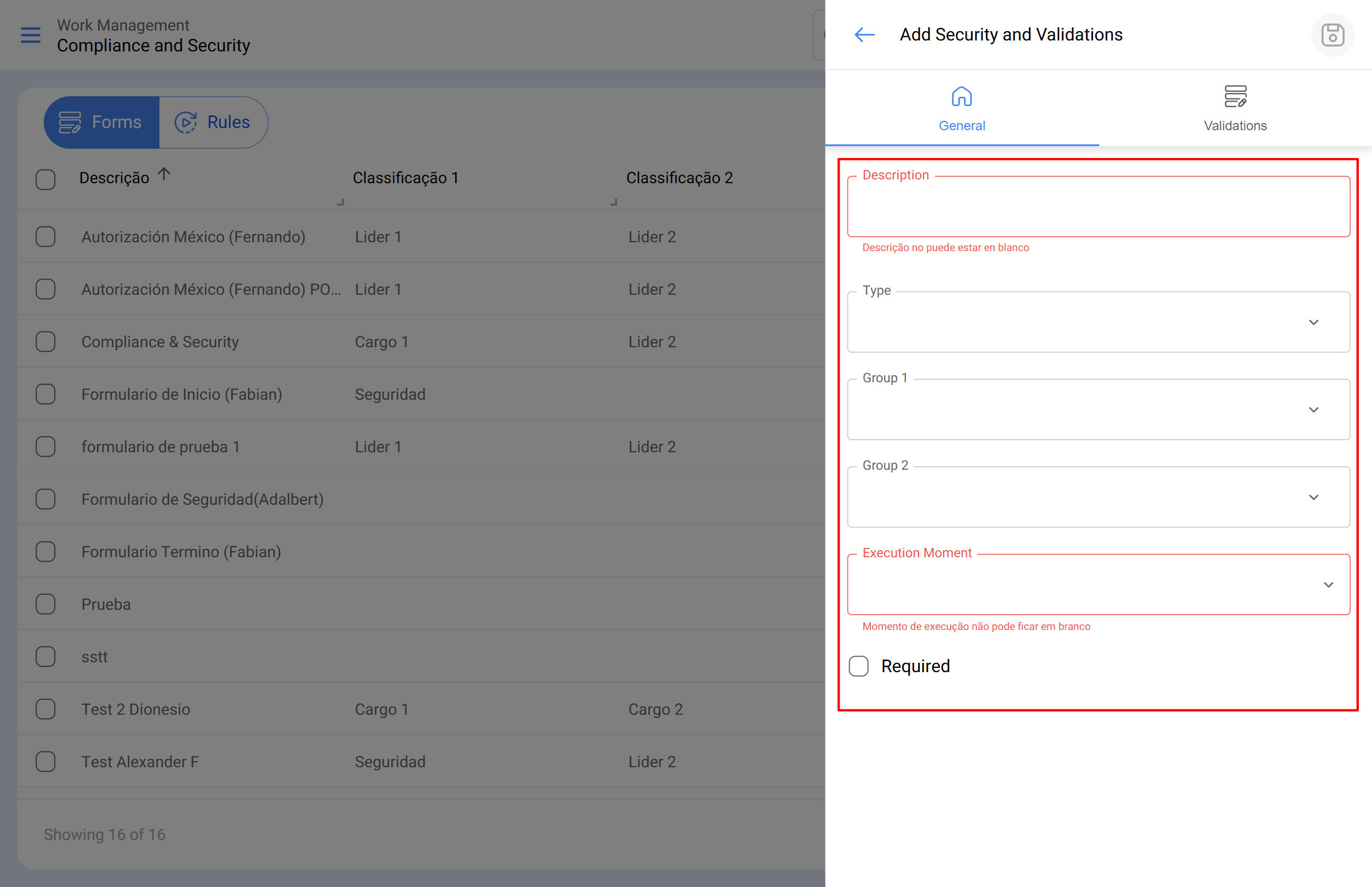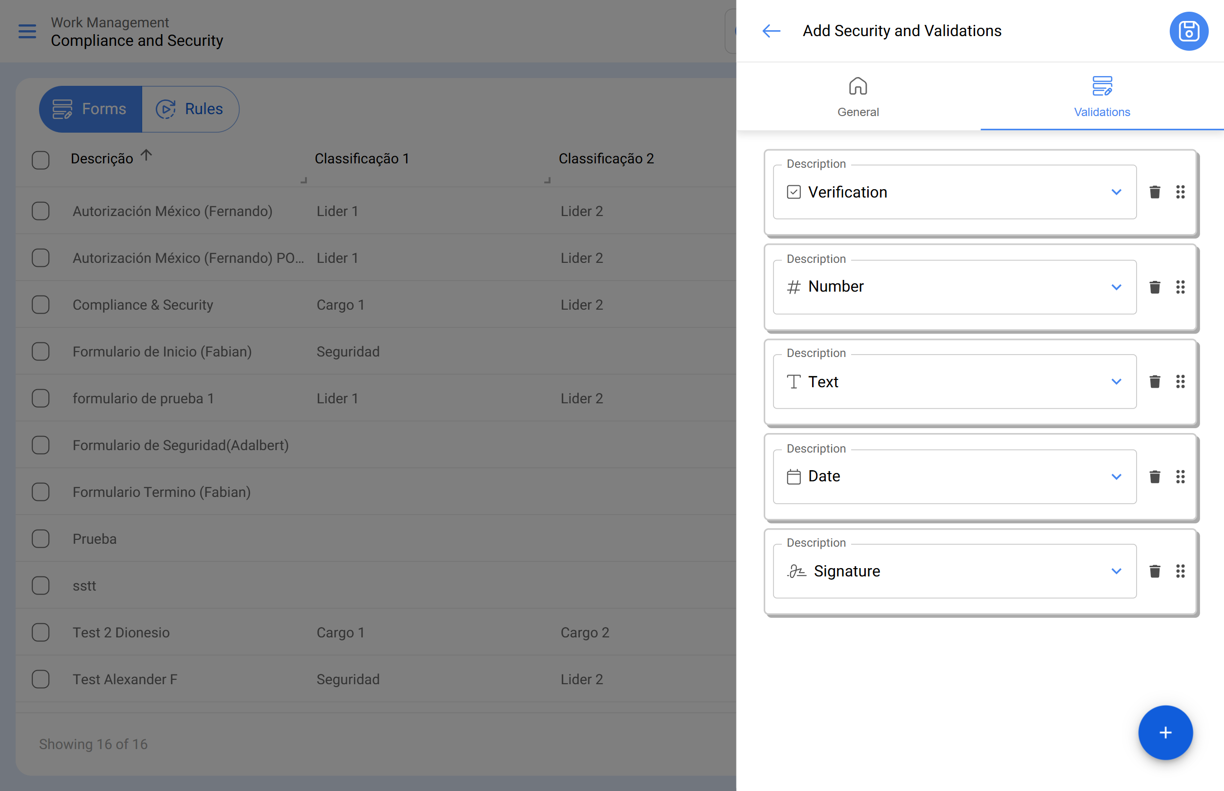 Below, we will explain how to create and configure these validation forms and how to apply the necessary activation rules for their proper use in tasks.