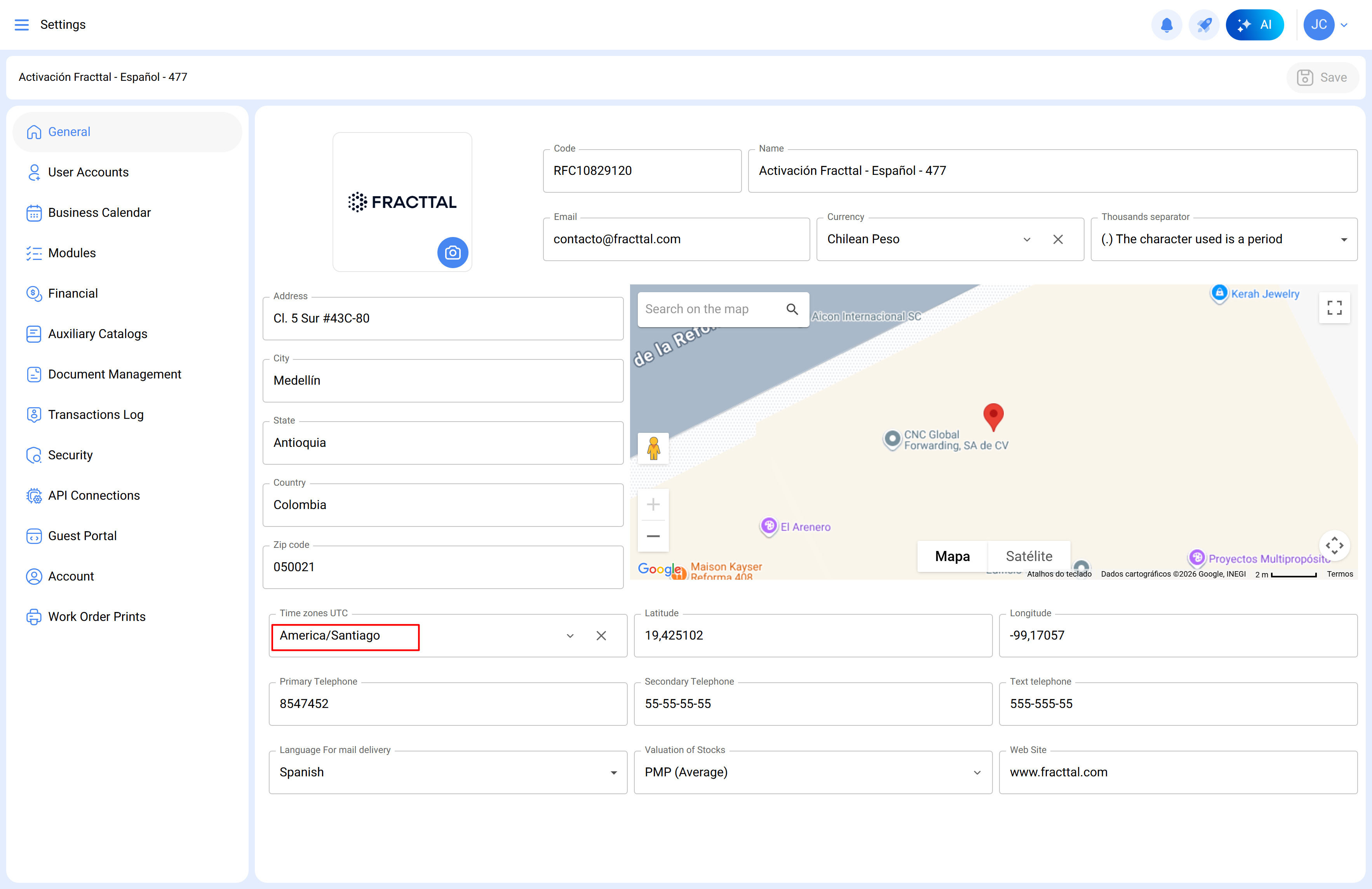 La plataforma permite personalizar la zona horaria desde una lista predefinida, evitando errores en fechas y asignaciones. Elegir la zona adecuada según la ubicación del usuario garantiza una gestión precisa, incluso con múltiples ubicaciones y zonas horarias.