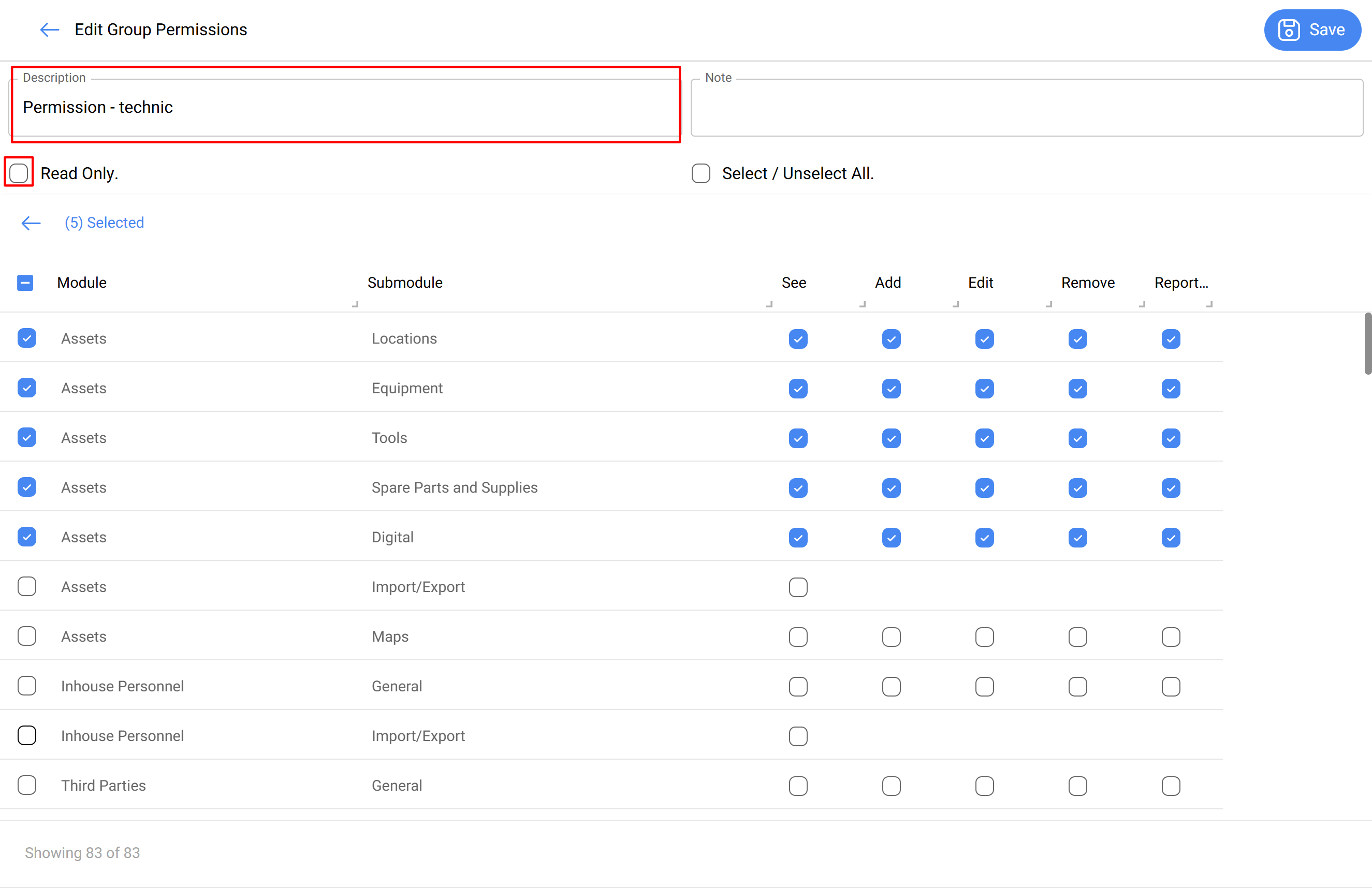 Haz clic en guardar para finalizar la creación del grupo de permisos.
