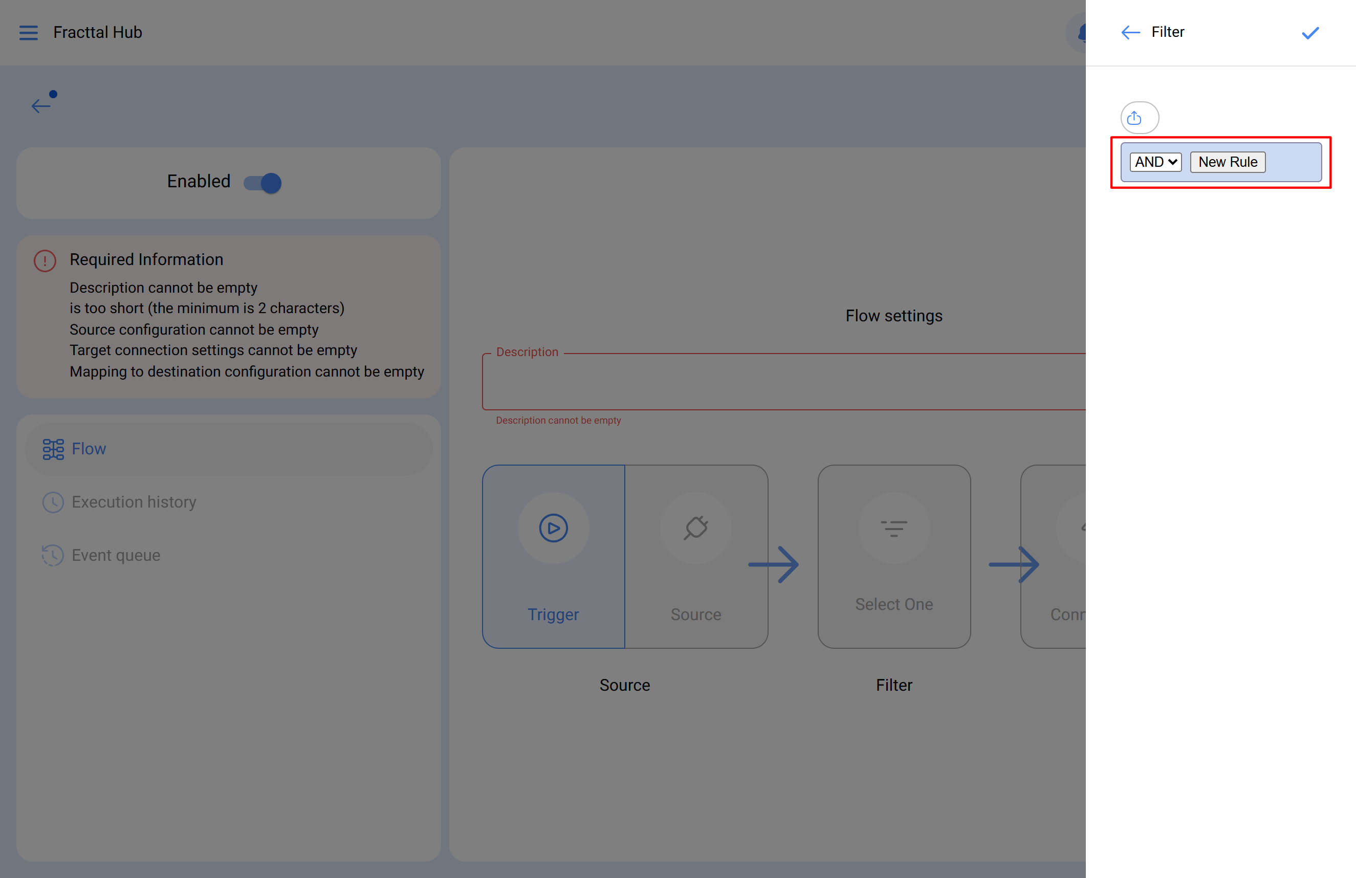 Si requiere una extracción de datos más precisa, seleccione la sección Filtro. Aquí puede establecer condiciones o reglas para definir qué registros específicos desea extraer de la fuente. Si no es necesario filtrar la información, este paso puede ser omitido.