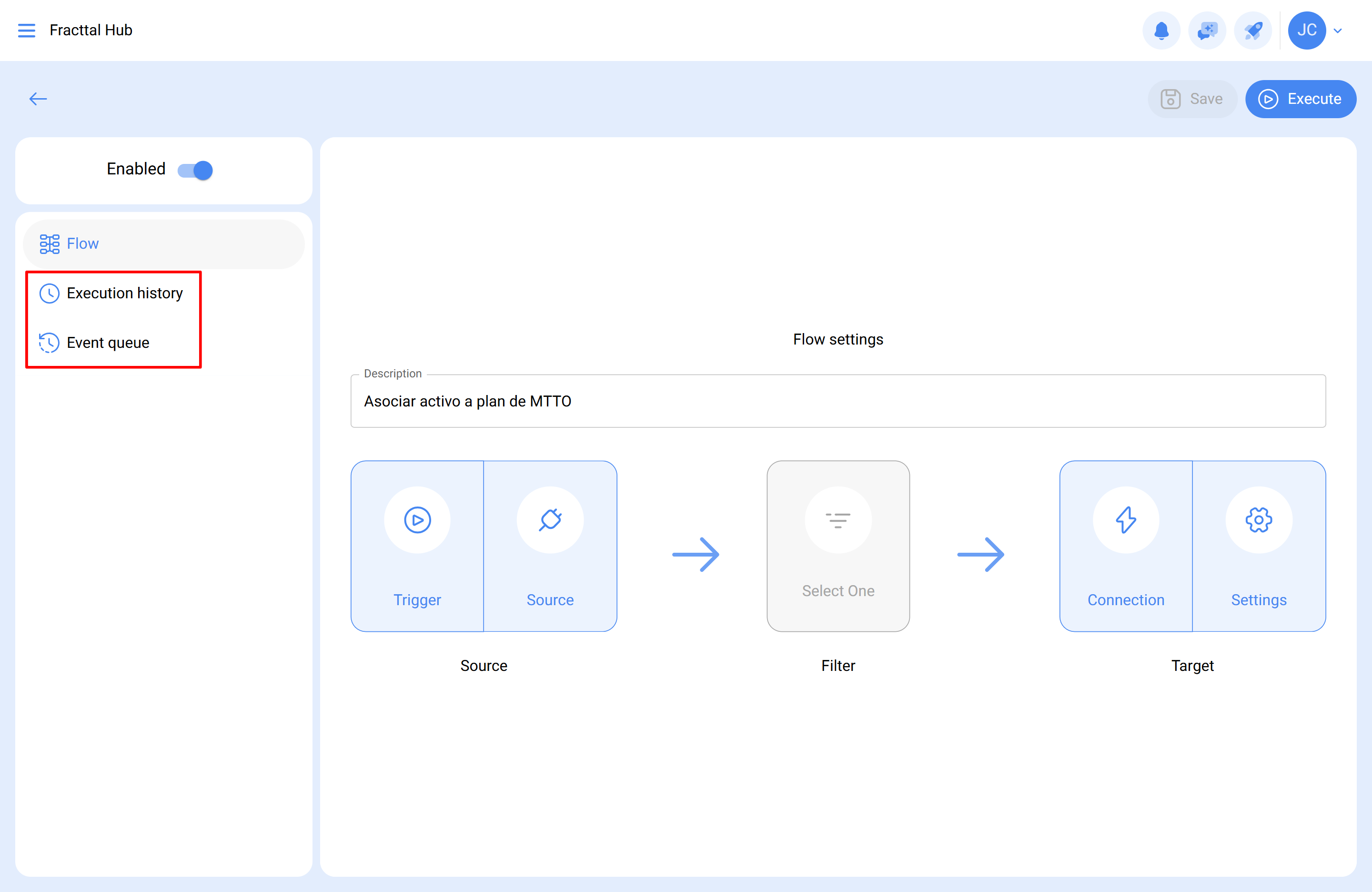 Paso 5: Configurar el flujo en Fracttal Hub