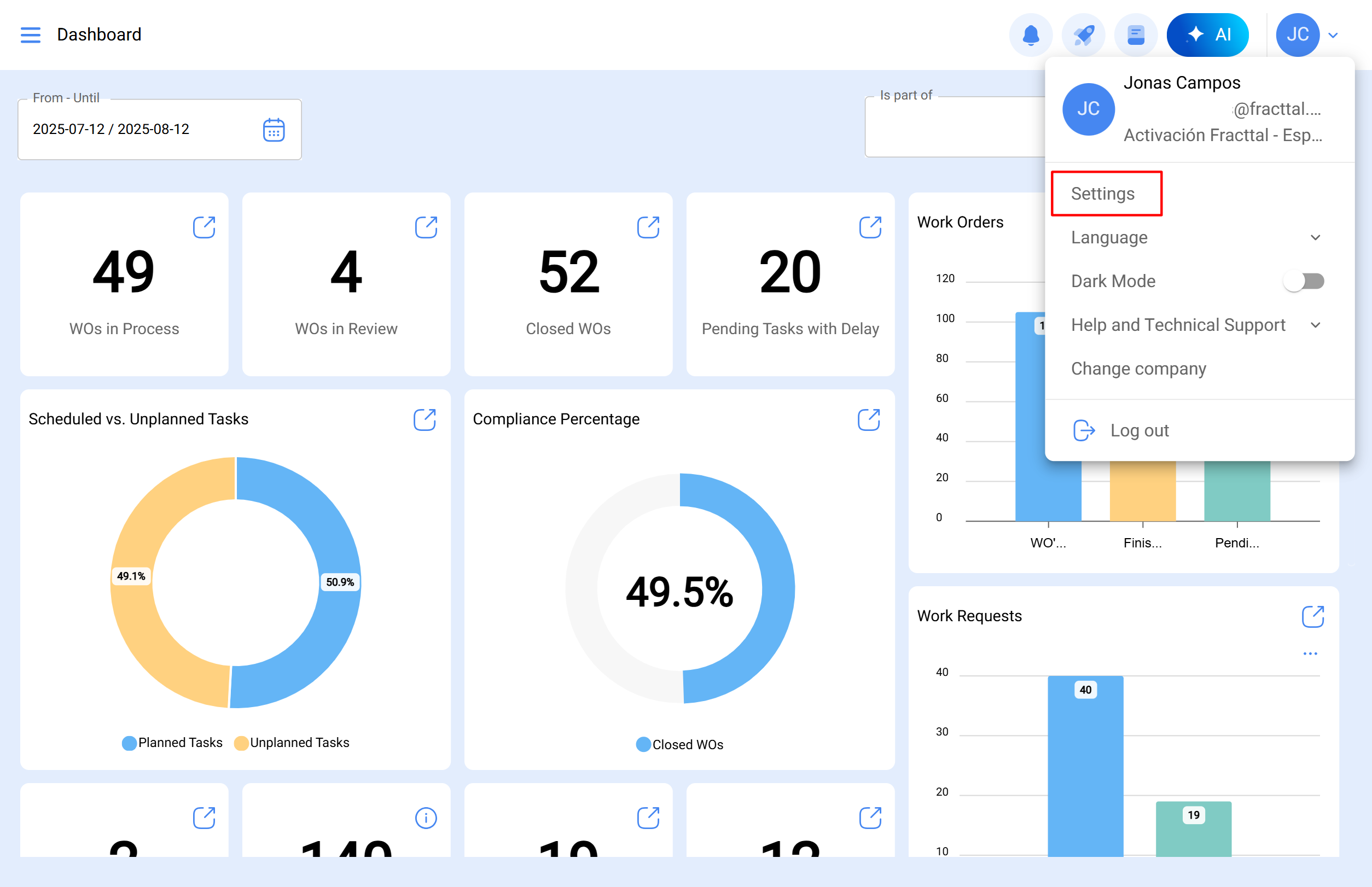 En el menú lateral izquierdo de Fracttal One, navegue hasta "Configuración".