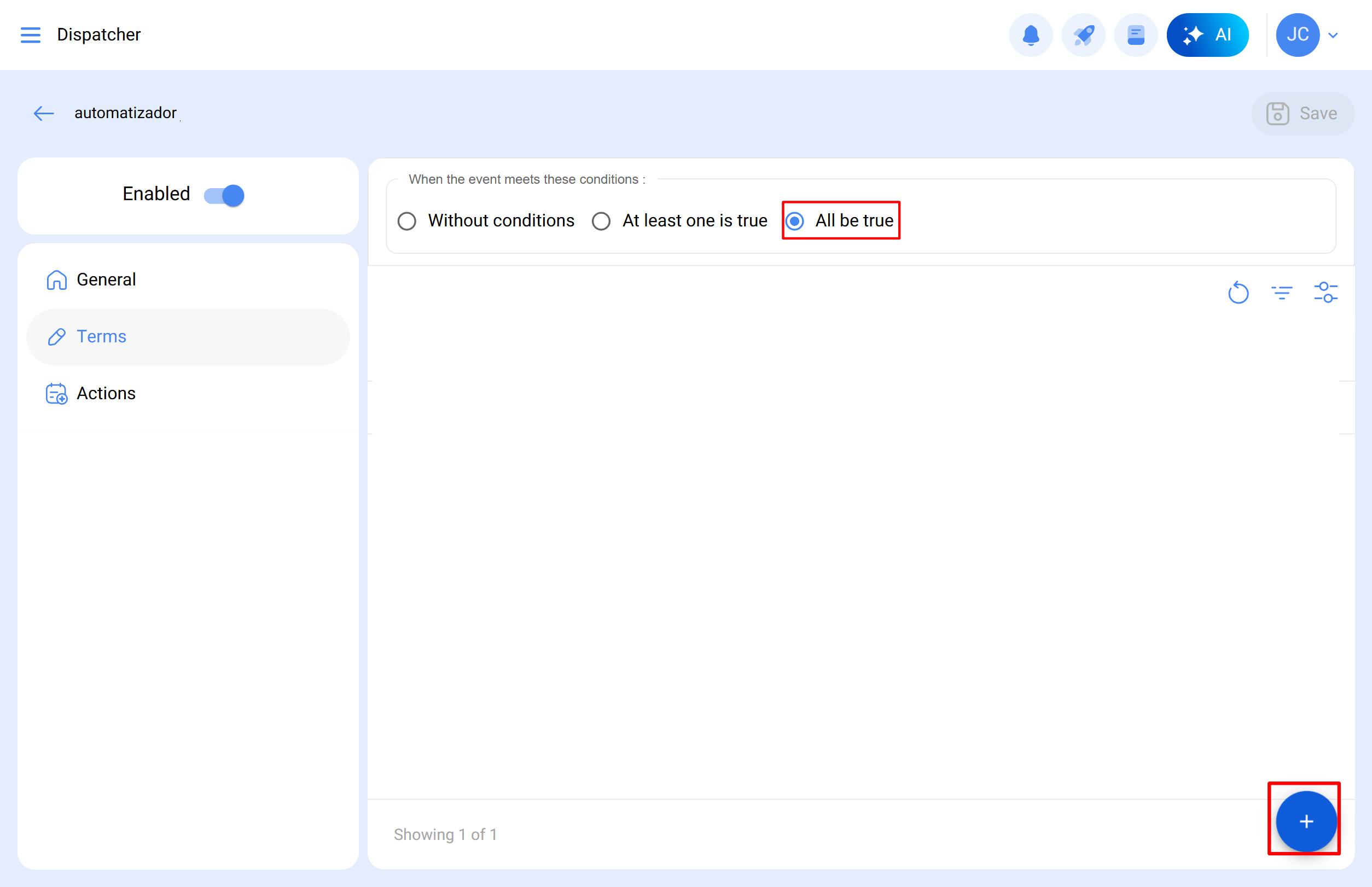 Para agregar la condición, haga clic en el icono de (+) en la esquina inferior derecha.