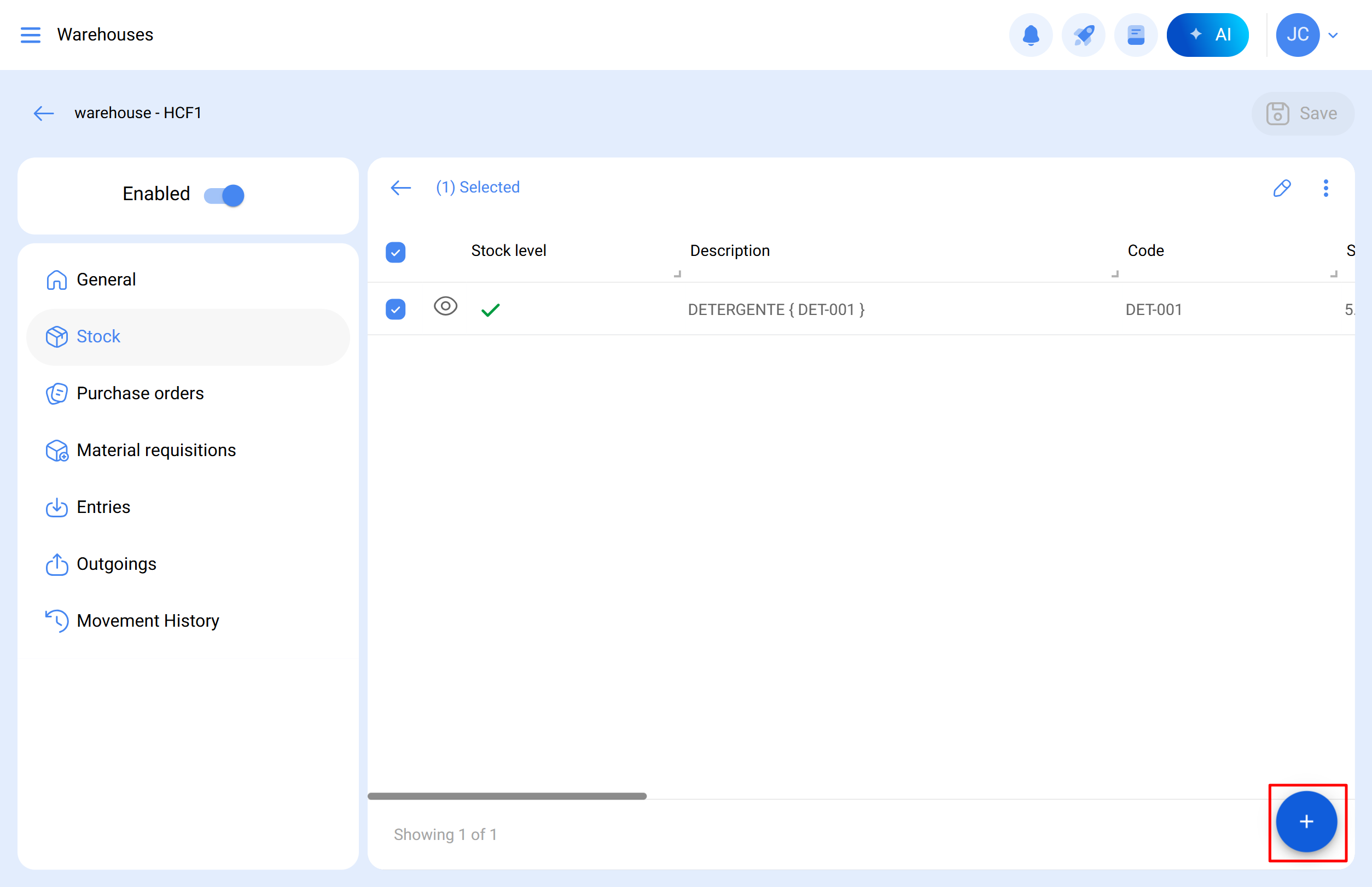- En el menú principal, seleccione Almacenes y luego el almacén deseado.