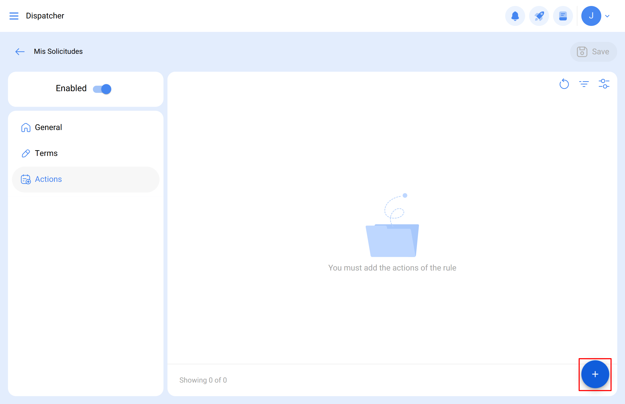 Guarde la pestaña General y avance a Acciones.