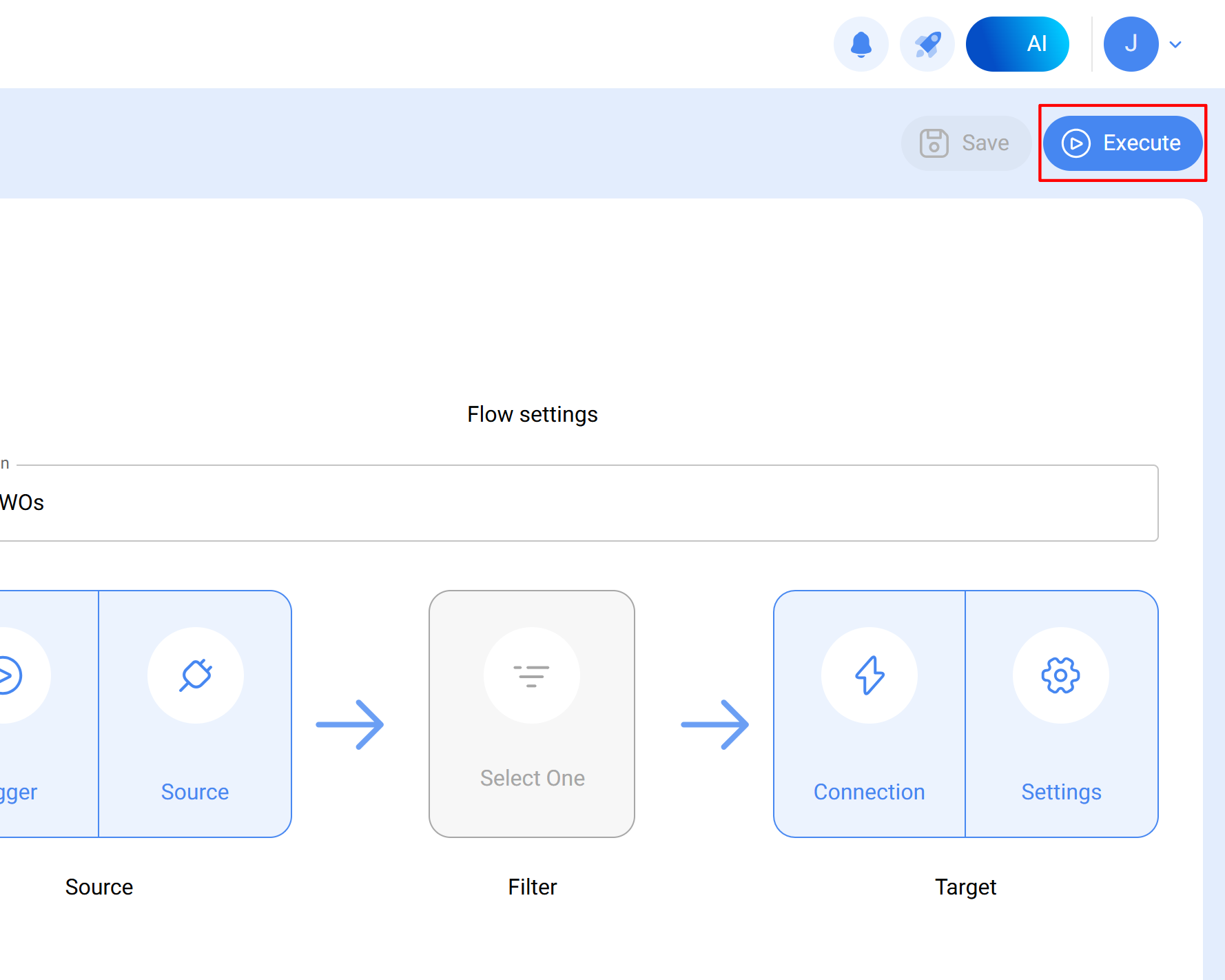 En la pantalla principal del flujo, haz clic en el botón Ejecutar.