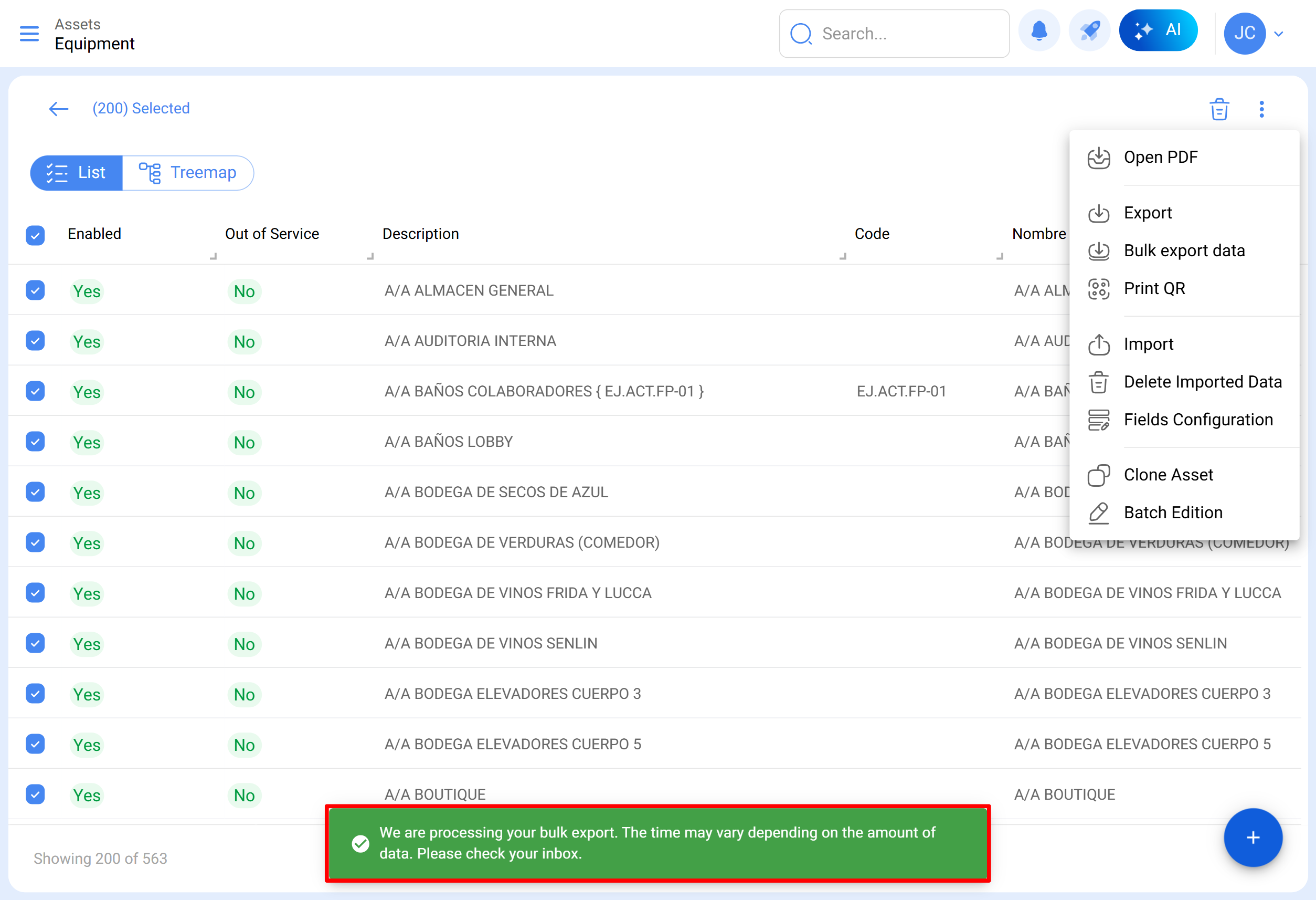 ¿Es posible realizar múltiples exportaciones masivas en Fracttal One?