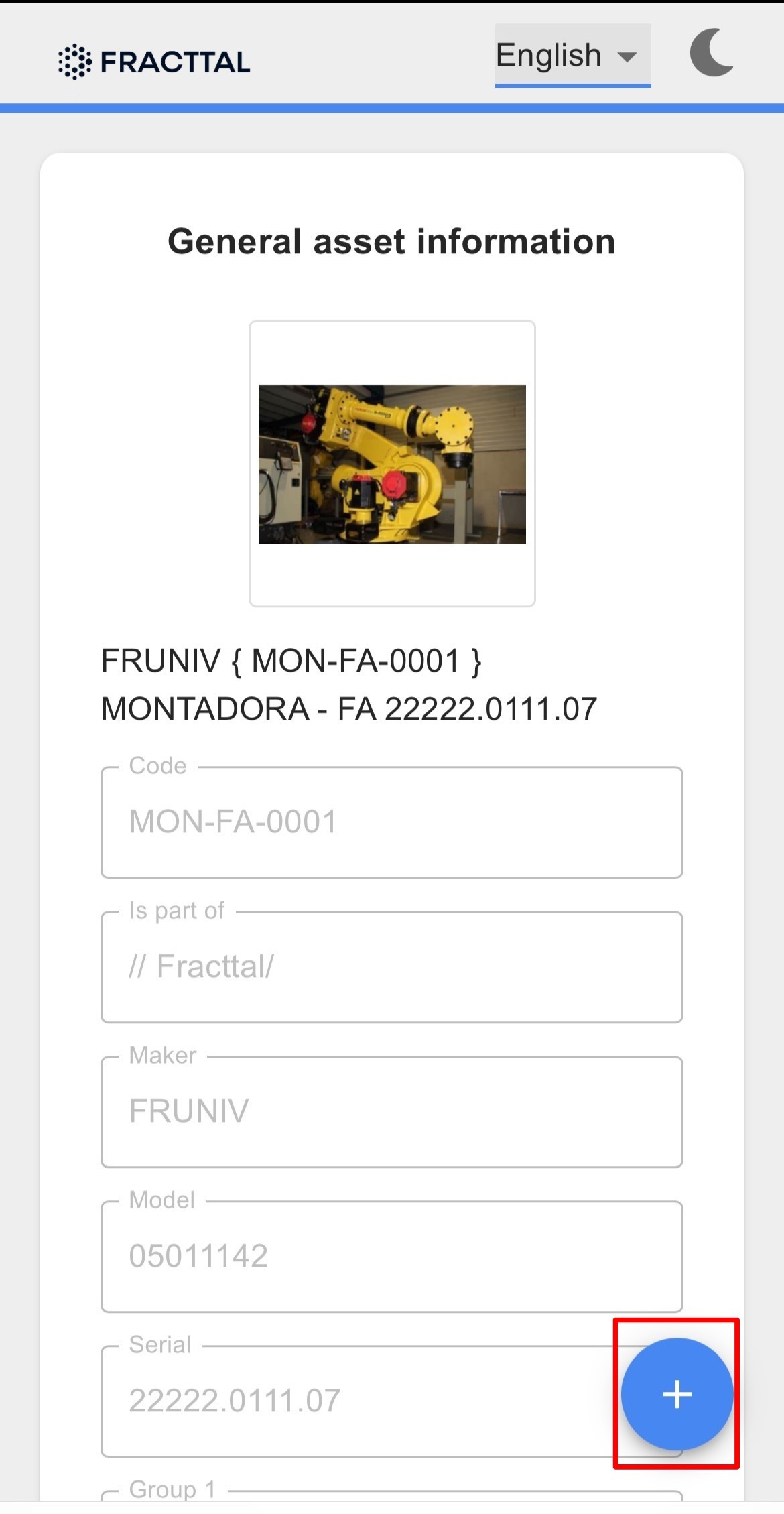 Lors de la détection de la lecture du code QR, le portail s’ouvrira où il sera possible de visualiser dans la partie inférieure chacune des tâches planifiées qui ont été exécutées pour cet actif. De même, il sera possible de faire des demandes de travail pour l’actif en question.