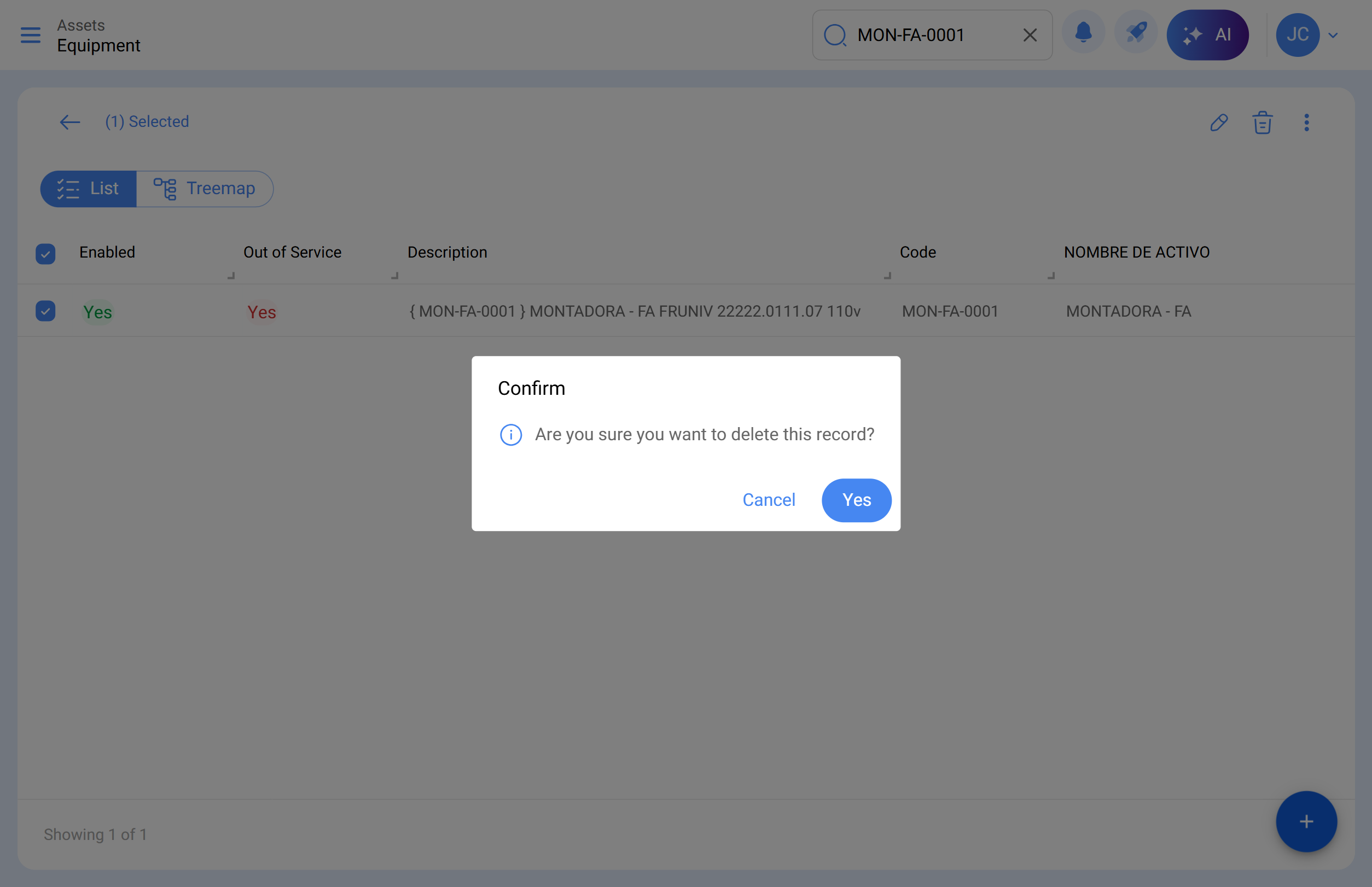 Dans Fracttal One, vous pouvez supprimer un actif rapidement tant qu'il n'est plus nécessaire de le conserver dans votre inventaire numérique. Voici les étapes pour accéder au module d'actifs, localiser l'élément souhaité et le supprimer correctement.