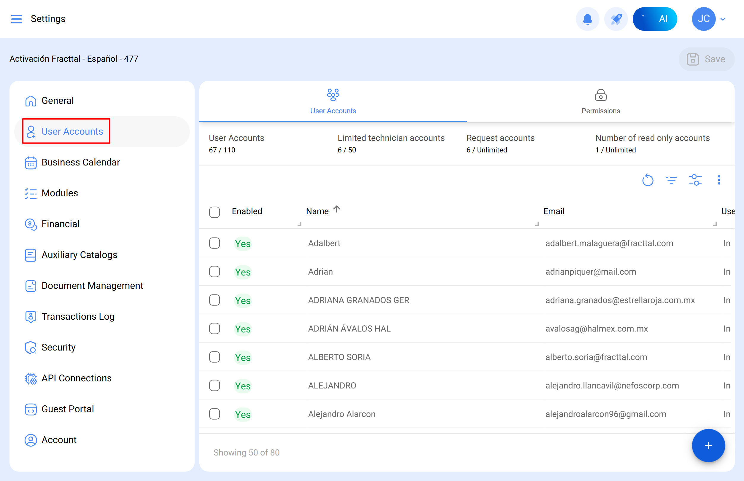 Activer Fracttal Hub (Middleware) : Cochez cette case. C’est crucial pour permettre à Fracttal Hub d’utiliser cette connexion.