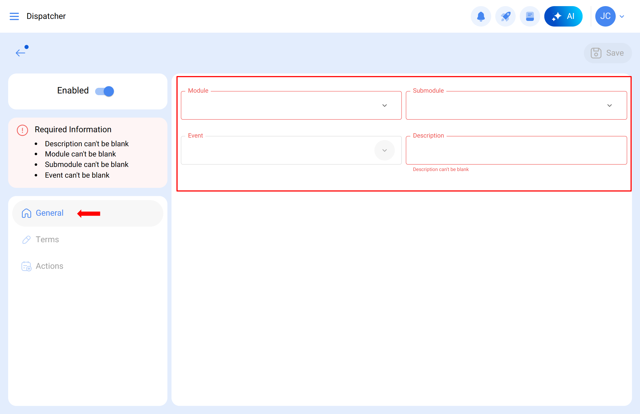 Dans le menu principal, allez à Automatisateur et sélectionnez Événements.