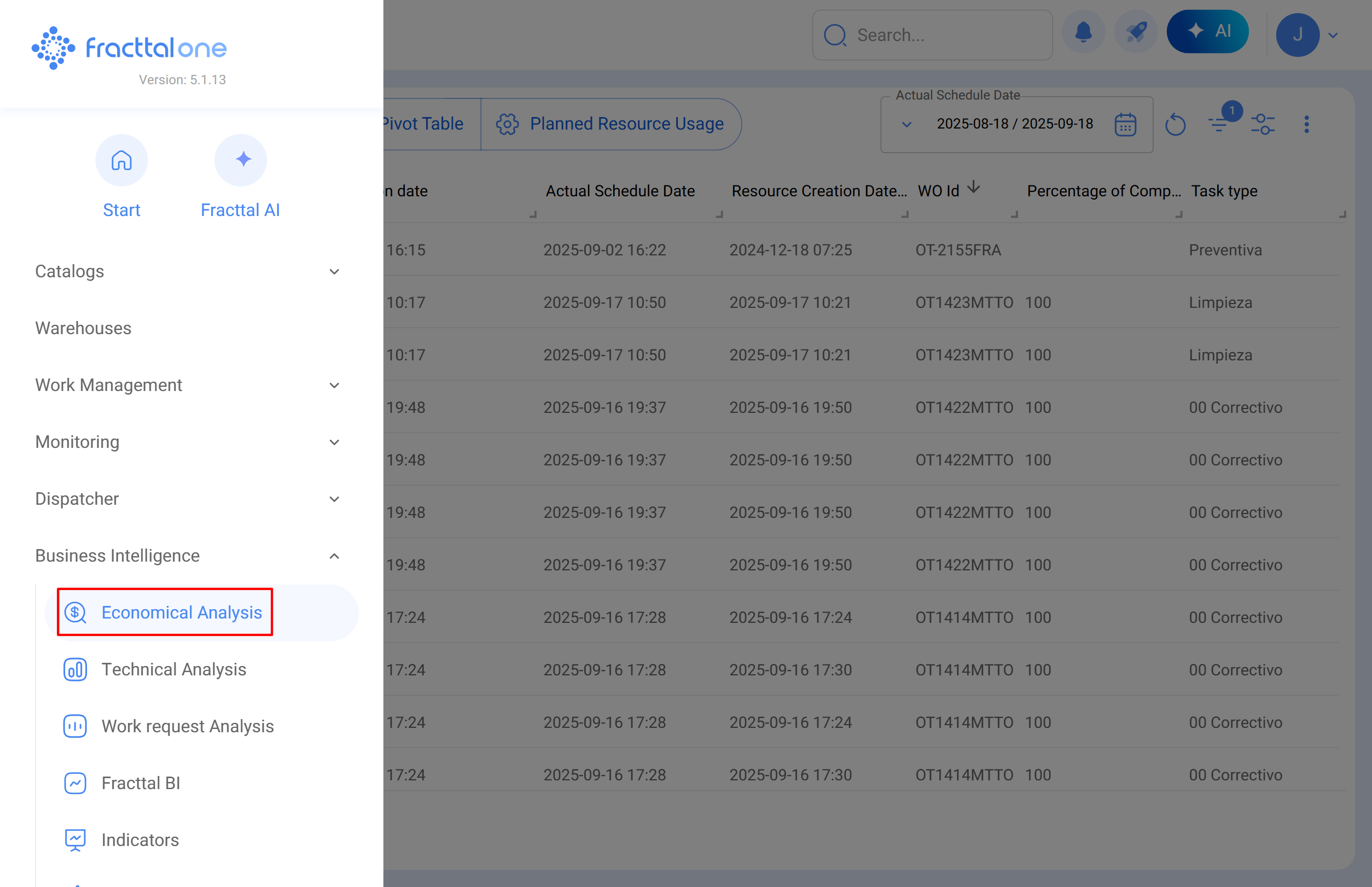 Ce module permet d'analyser et de visualiser les données clés de maintenance afin d'optimiser les ressources, d'améliorer l'efficacité et de suivre les KPIs. Avec des tableaux de bord intuitifs, des rapports détaillés et des analyses avancées, Fracttal BI facilite la gestion stratégique de la maintenance.