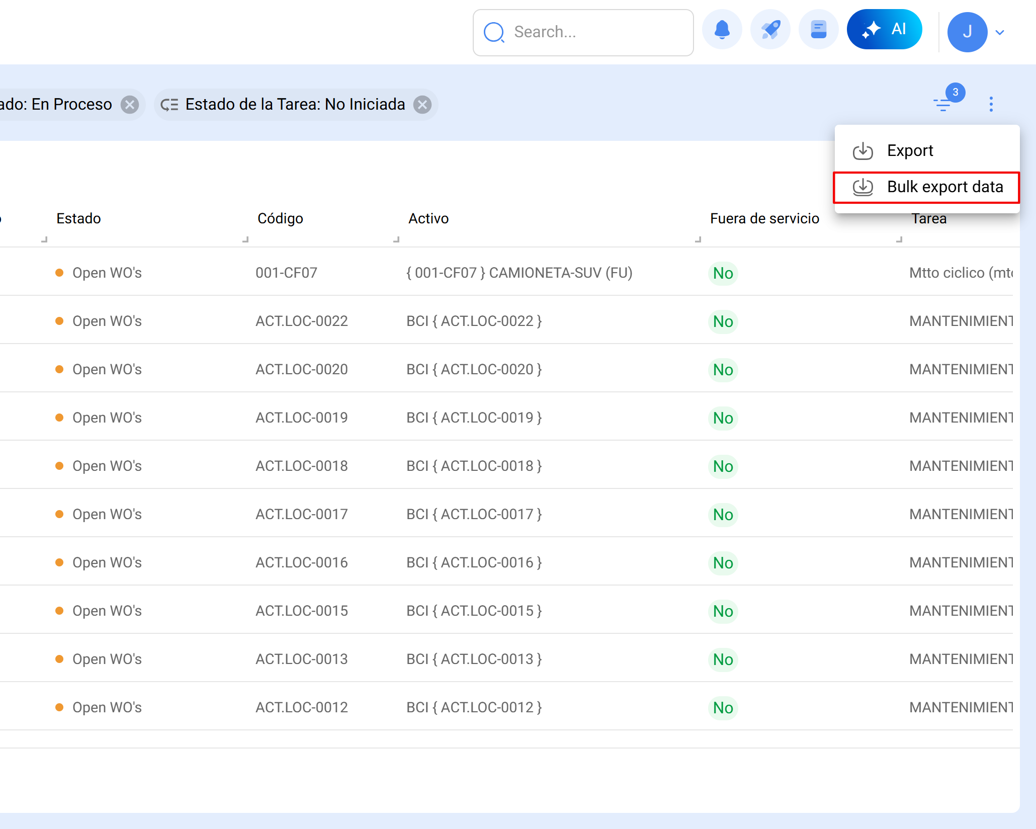 Retournez dans Fracttal One, en vue liste des Ordres de travail.
