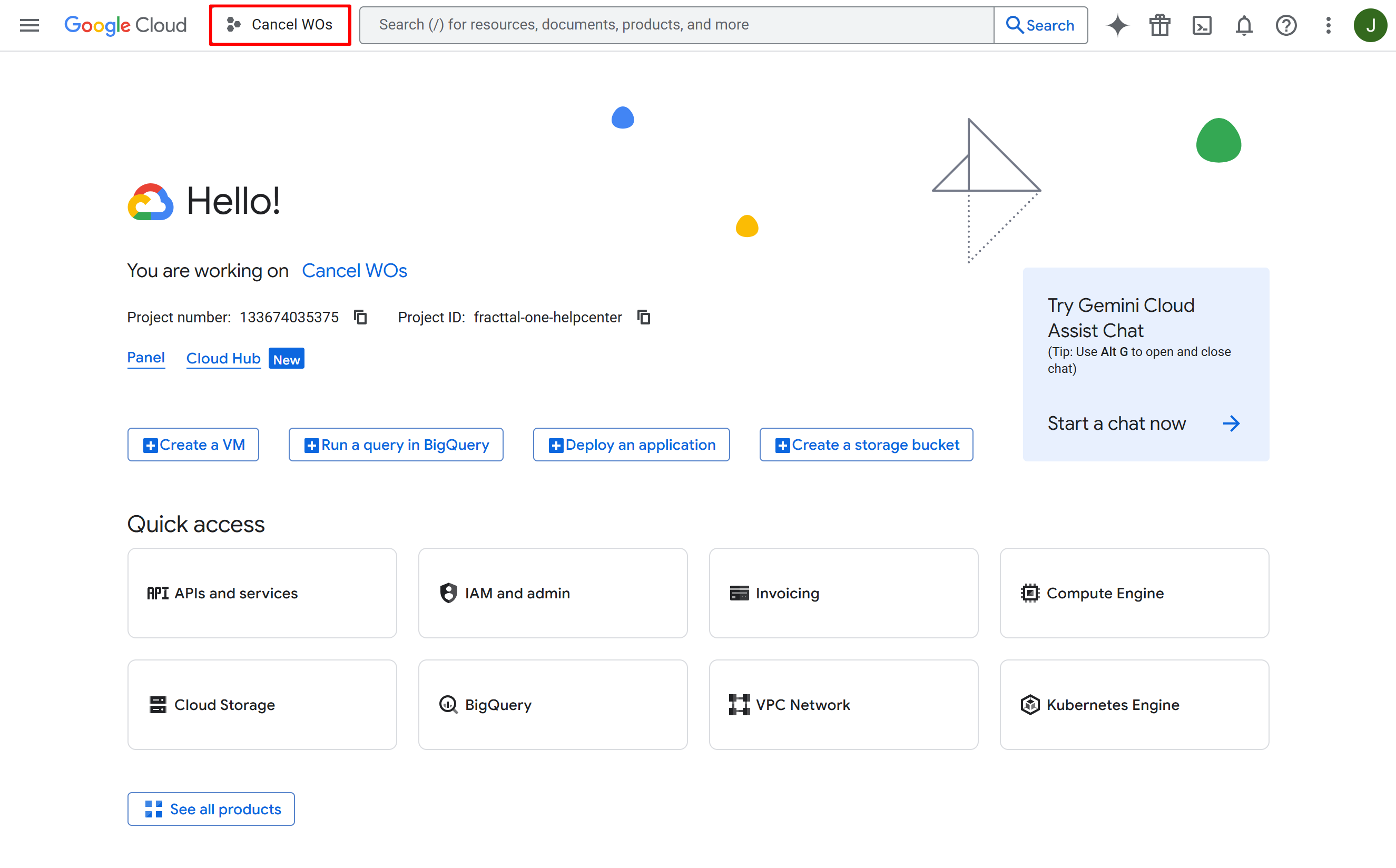Accédez à Google Cloud Platform (GCP) avec votre compte Google et cliquez sur le sélecteur de projets dans la barre supérieure, à côté du logo.