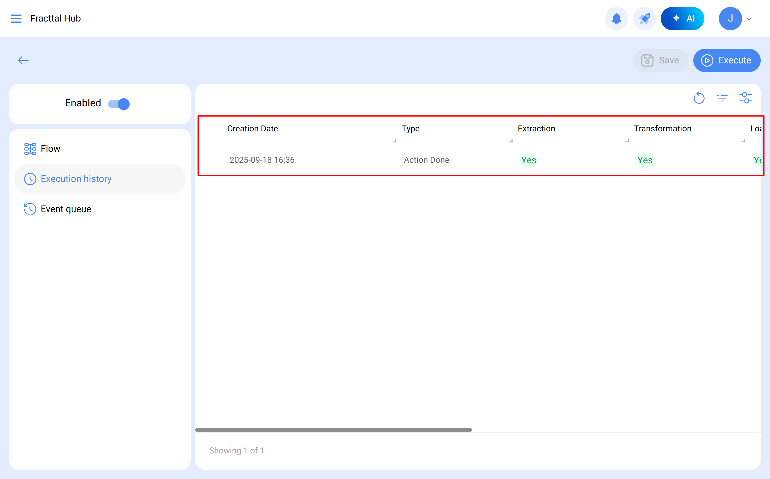 Dans l’écran principal du flux, cliquez sur Exécuter.