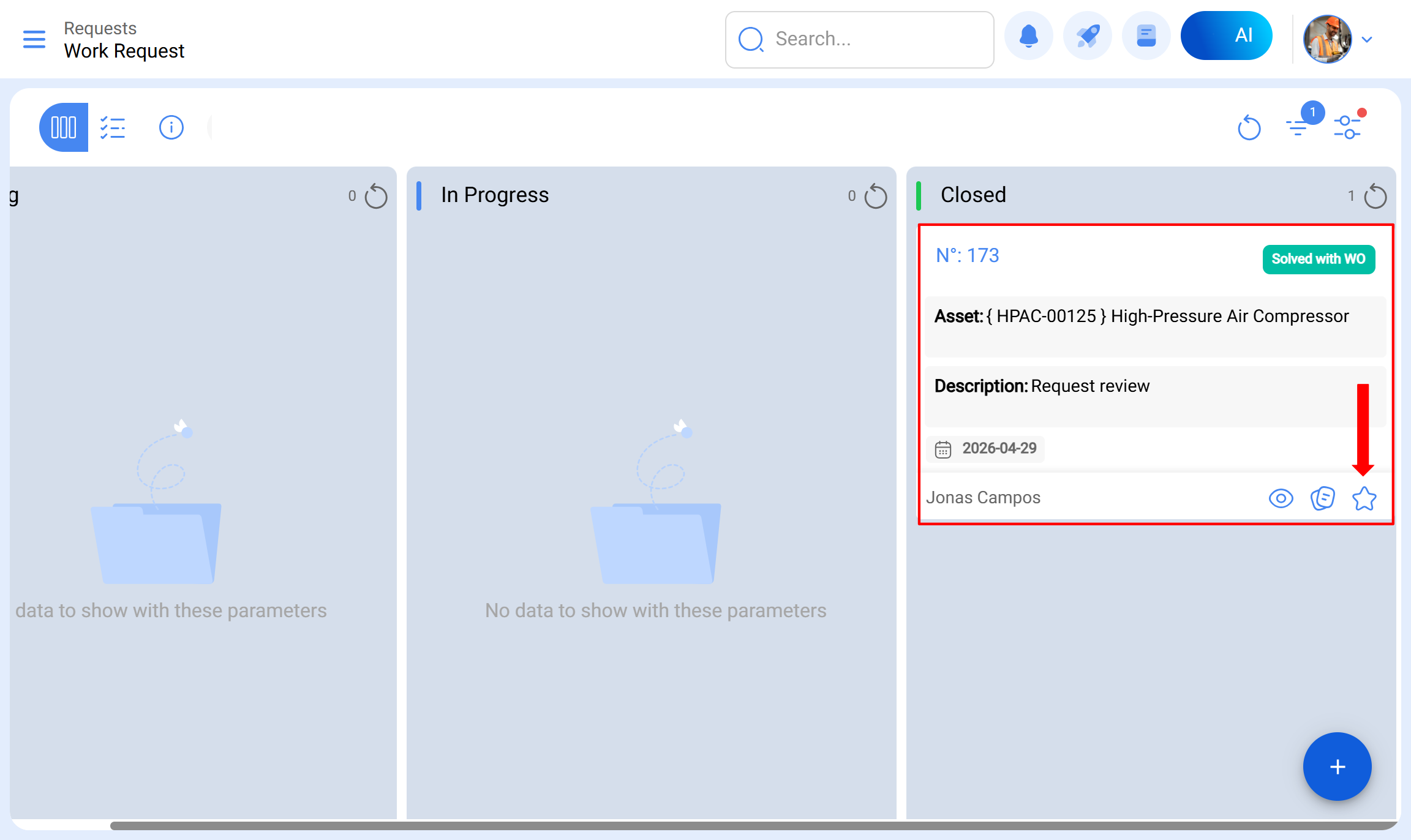 Dans Fracttal One, il est possible d’évaluer les demandes terminées, ce qui offre une meilleure visibilité sur les actions opérationnelles réalisées.