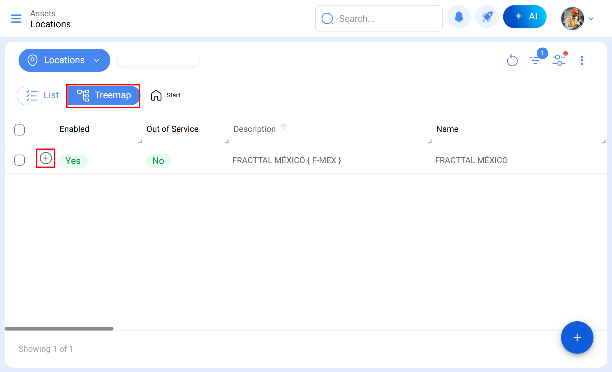 Nota: Esta vista permite apenas a visualização do tipo de ativo correspondente ao módulo em que nos encontramos. Ou seja, se estivermos no módulo de localizações, será possível visualizar apenas os ativos desse tipo.