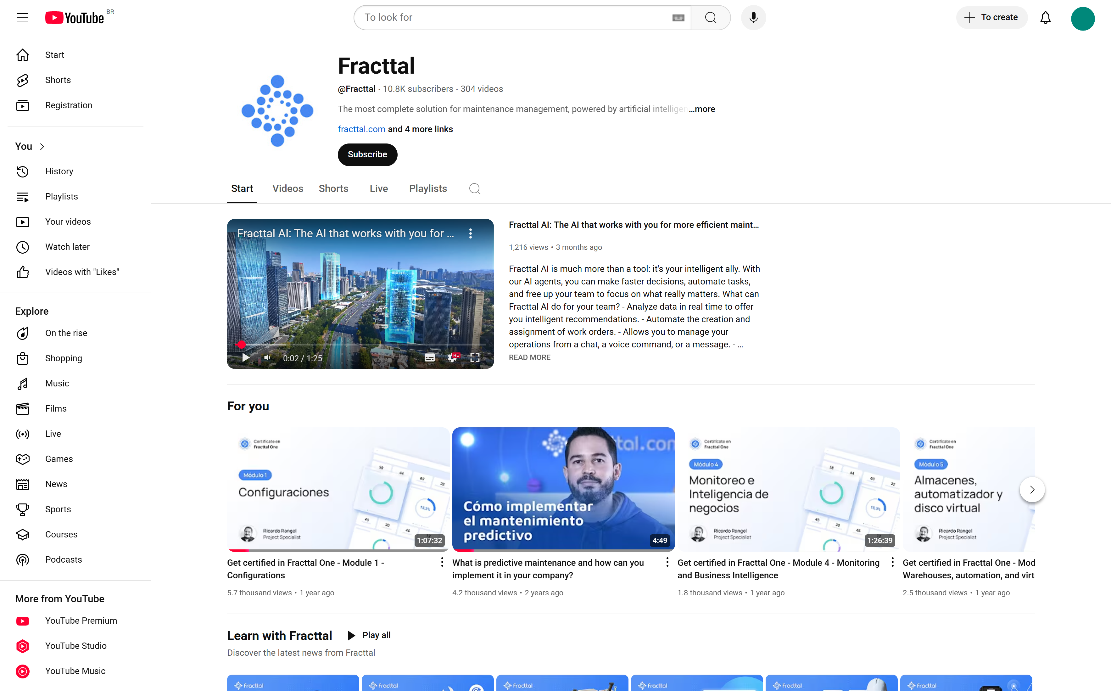 Canal do YouTube do Fracttal
