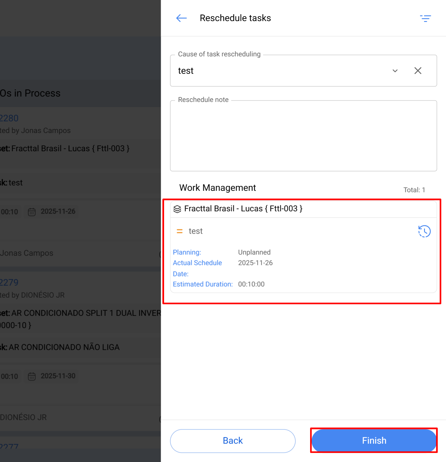 2. Cancelar OS e reagendar tarefas