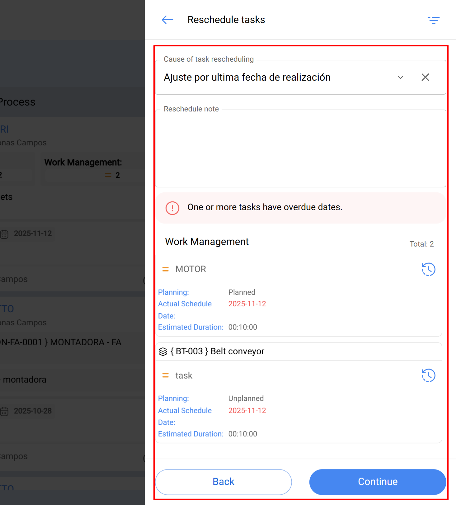 Esta opção cancela a OS e reagenda automaticamente cada tarefa em sua próxima iteração, conforme a frequência definida no plano de manutenção.