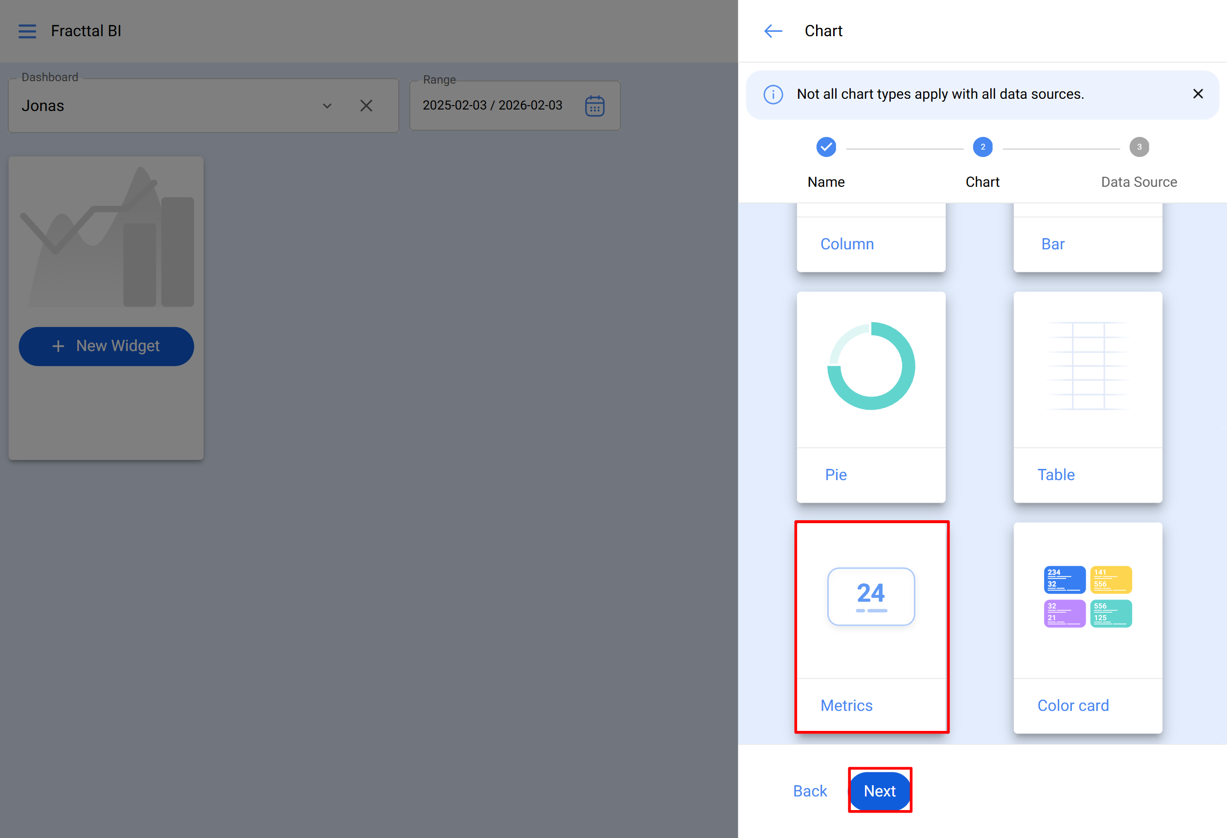 Em seguida, escolha o tipo de gráfico Métricas.