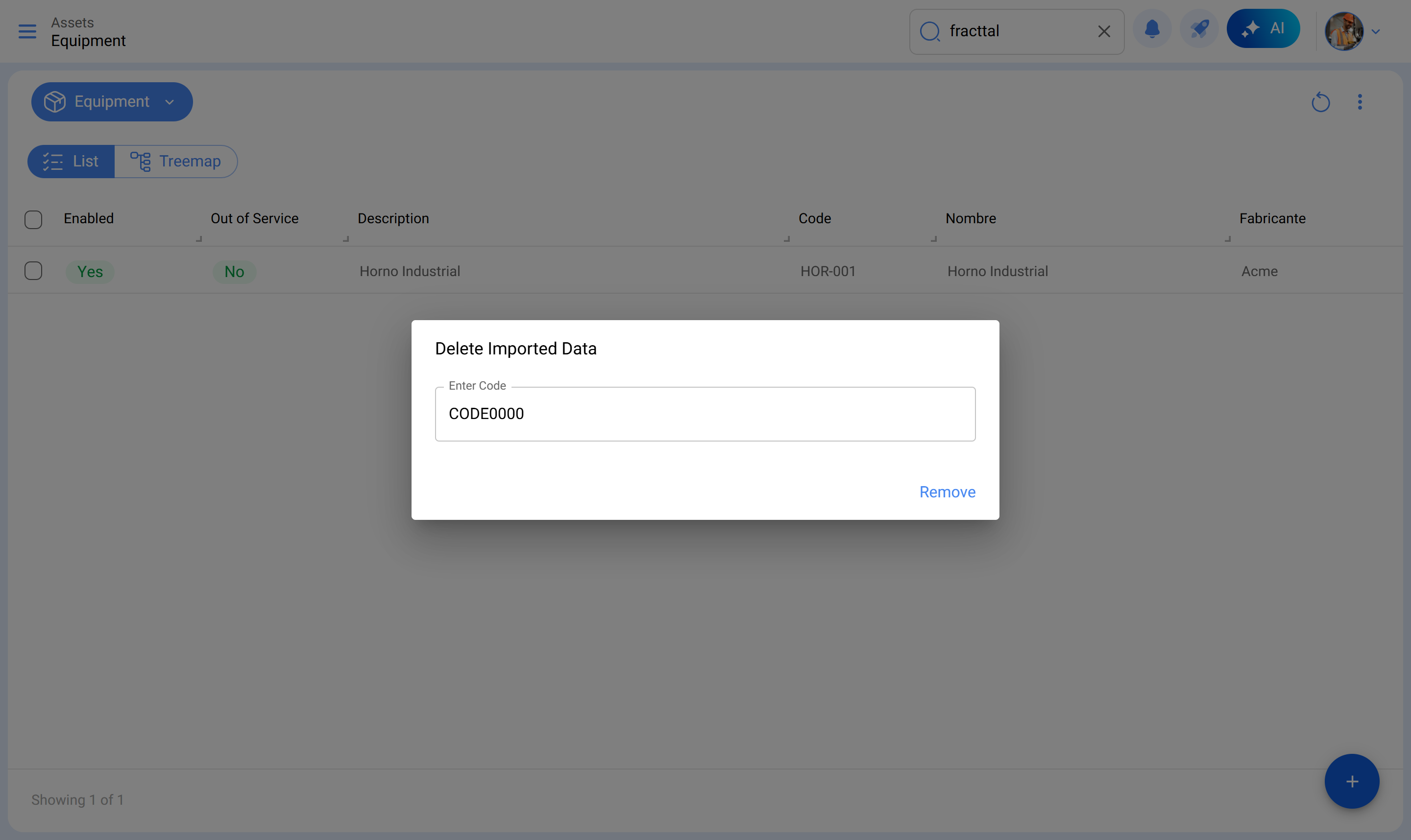 Nota: O código só terá validade se, após a importação, não tiver sido feita nenhuma edição ou eliminação nos ativos importados.