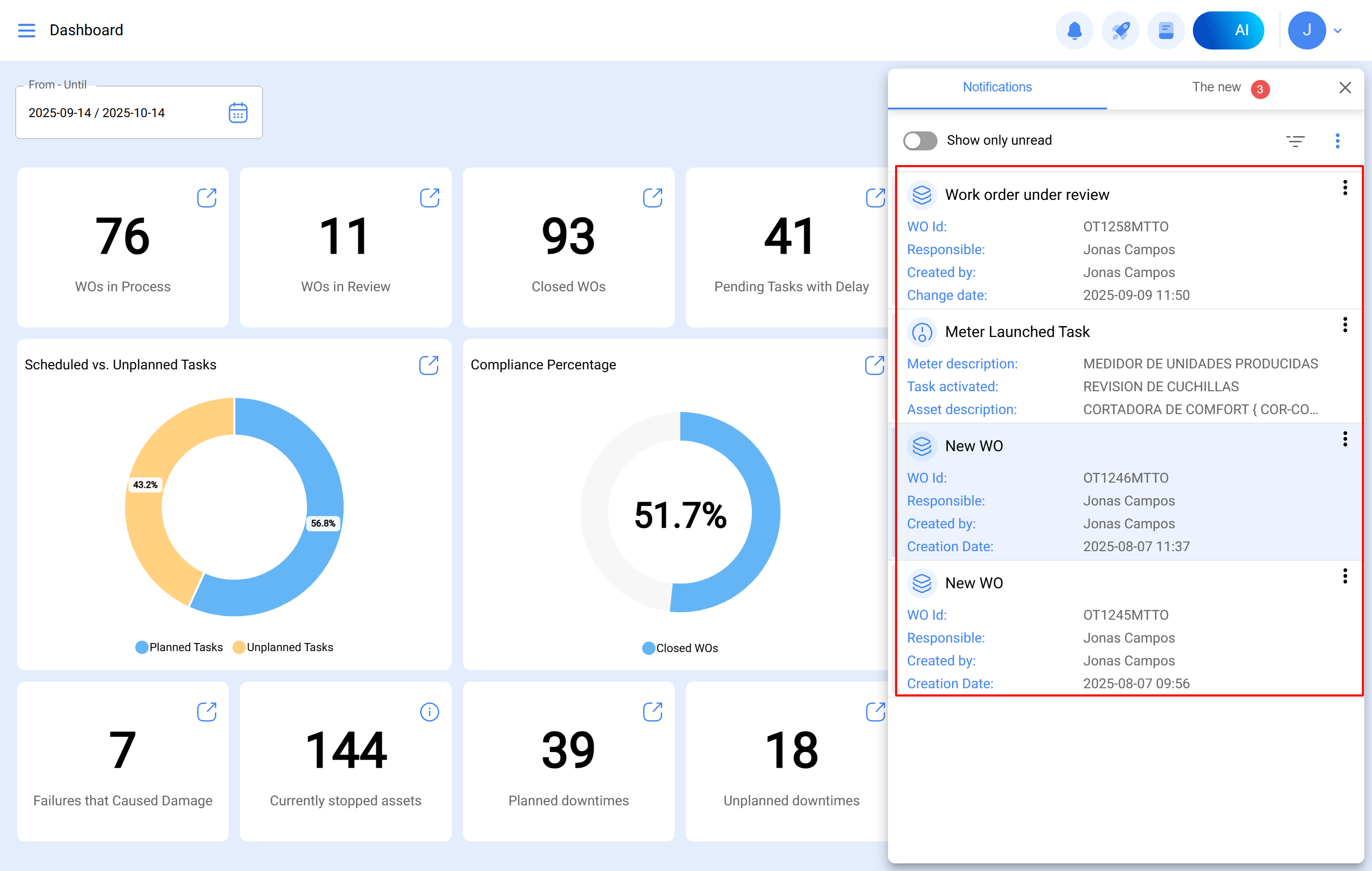 Ao clicar no ícone de notificações, abrir-se-á um menu pendente onde poderá visualizar as suas notificações.