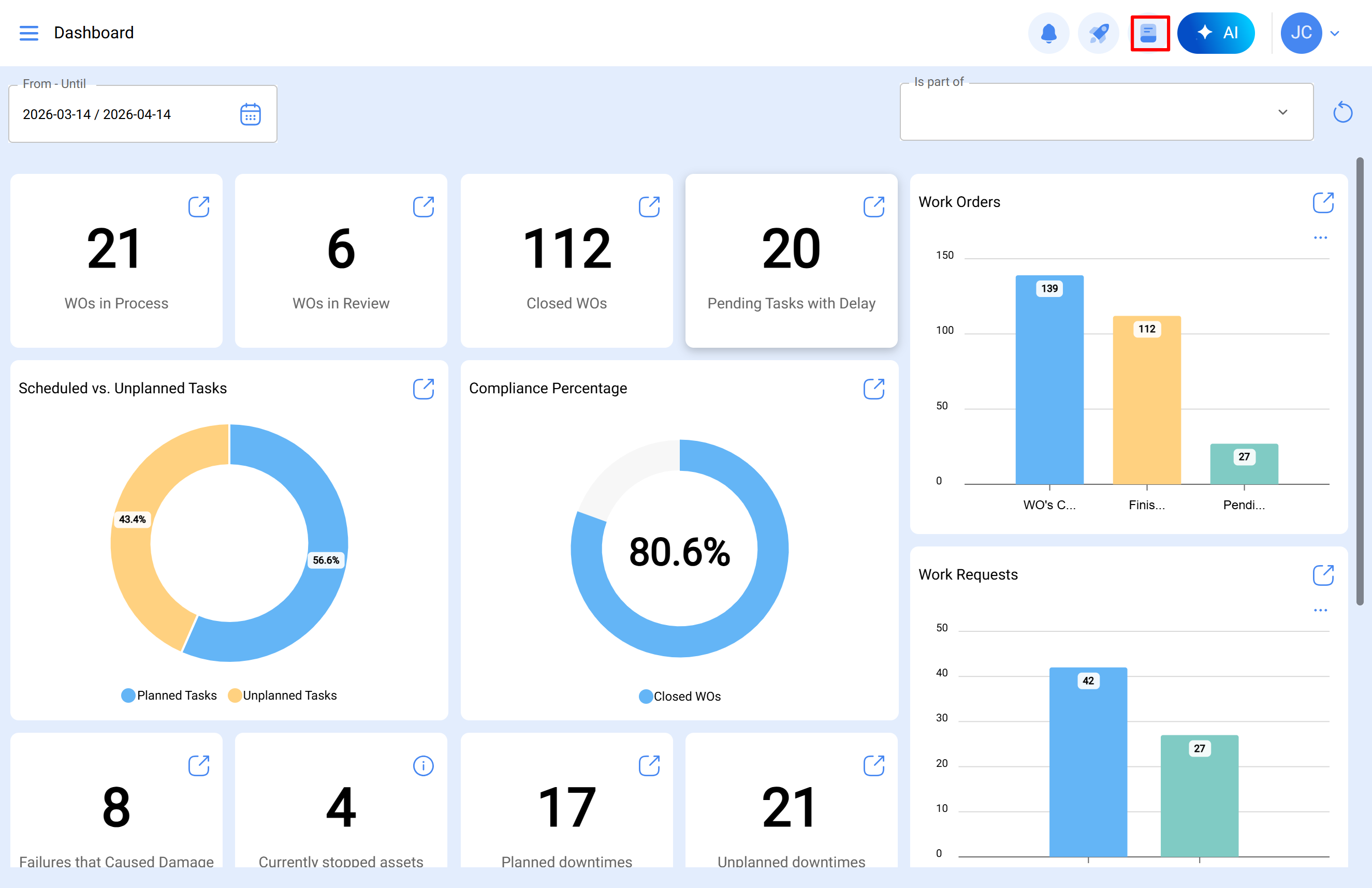 Nota: Este filtro não é aplicável no dashboard, nem na vista em árvore dos ativos.