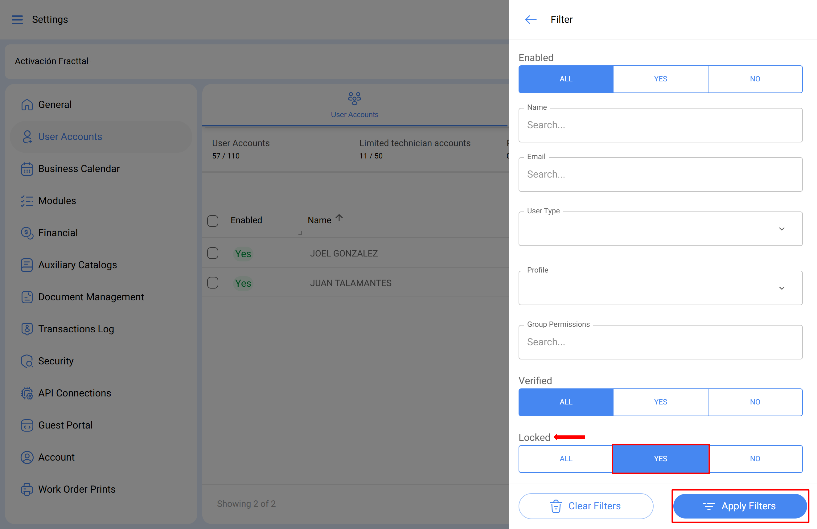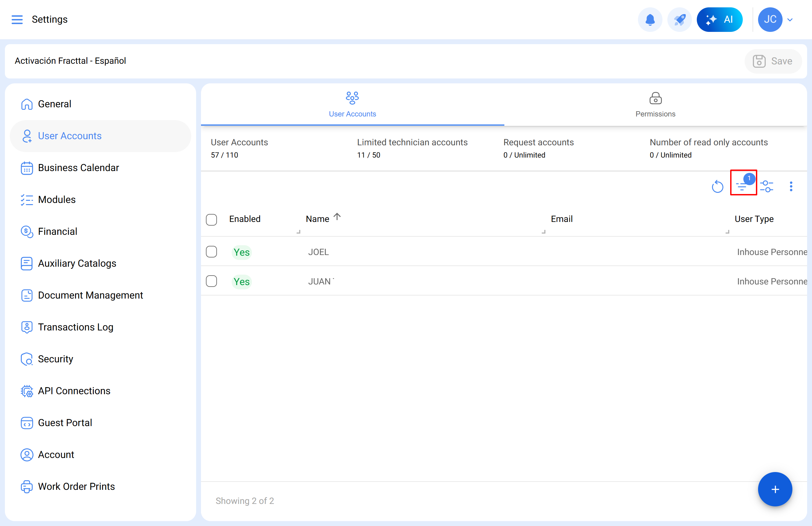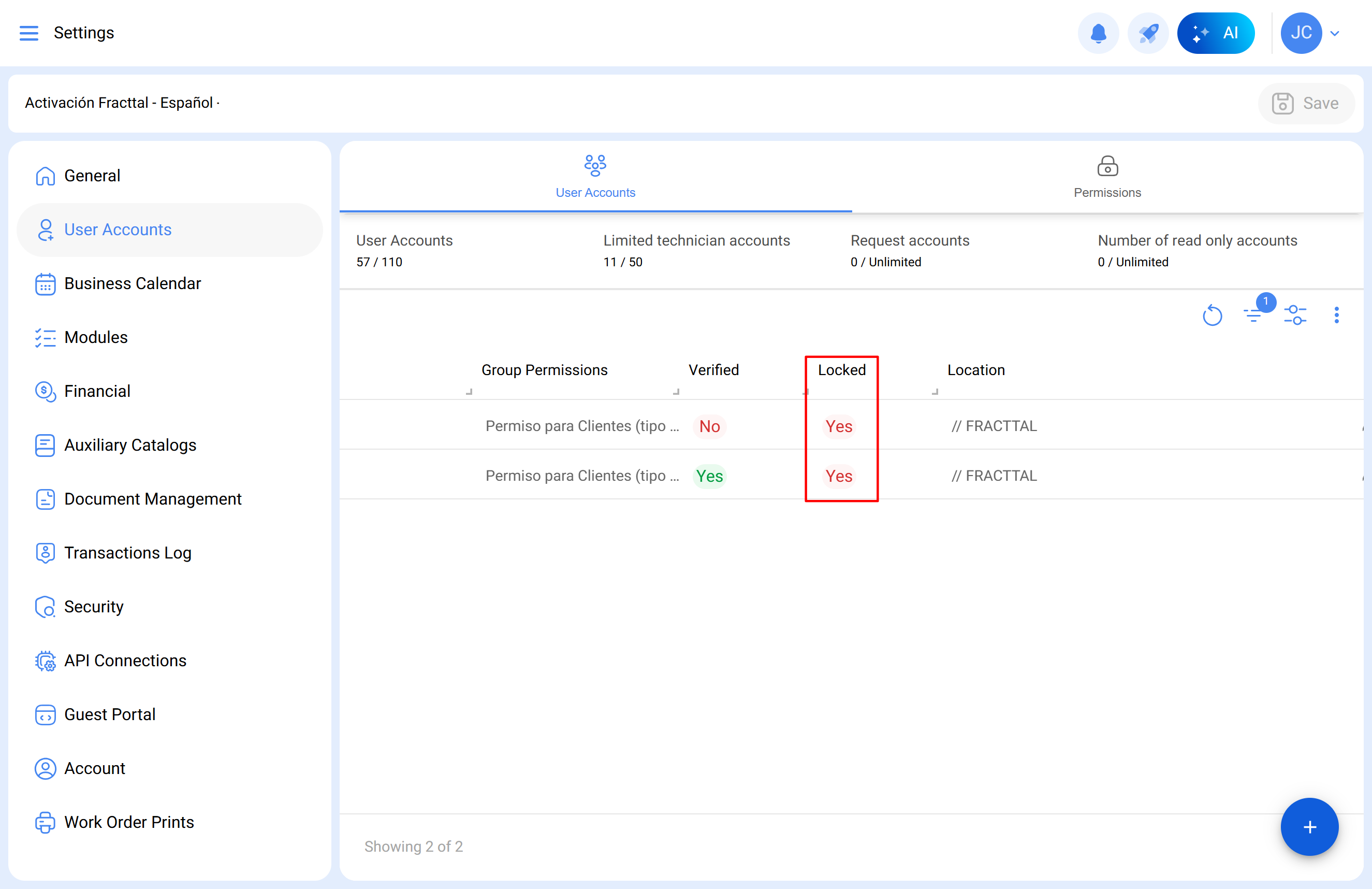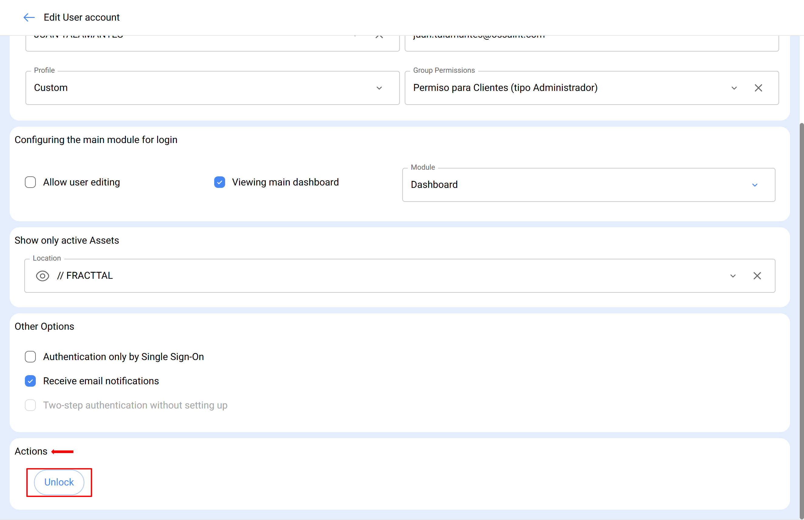 Para desbloquear uma conta de utilizador no Fracttal, é necessário que tenha uma conta de administrador. Com este tipo de acesso, poderá desbloquear as contas que tenham sido bloqueadas após múltiplas tentativas falhadas de início de sessão com palavra-passe incorreta.