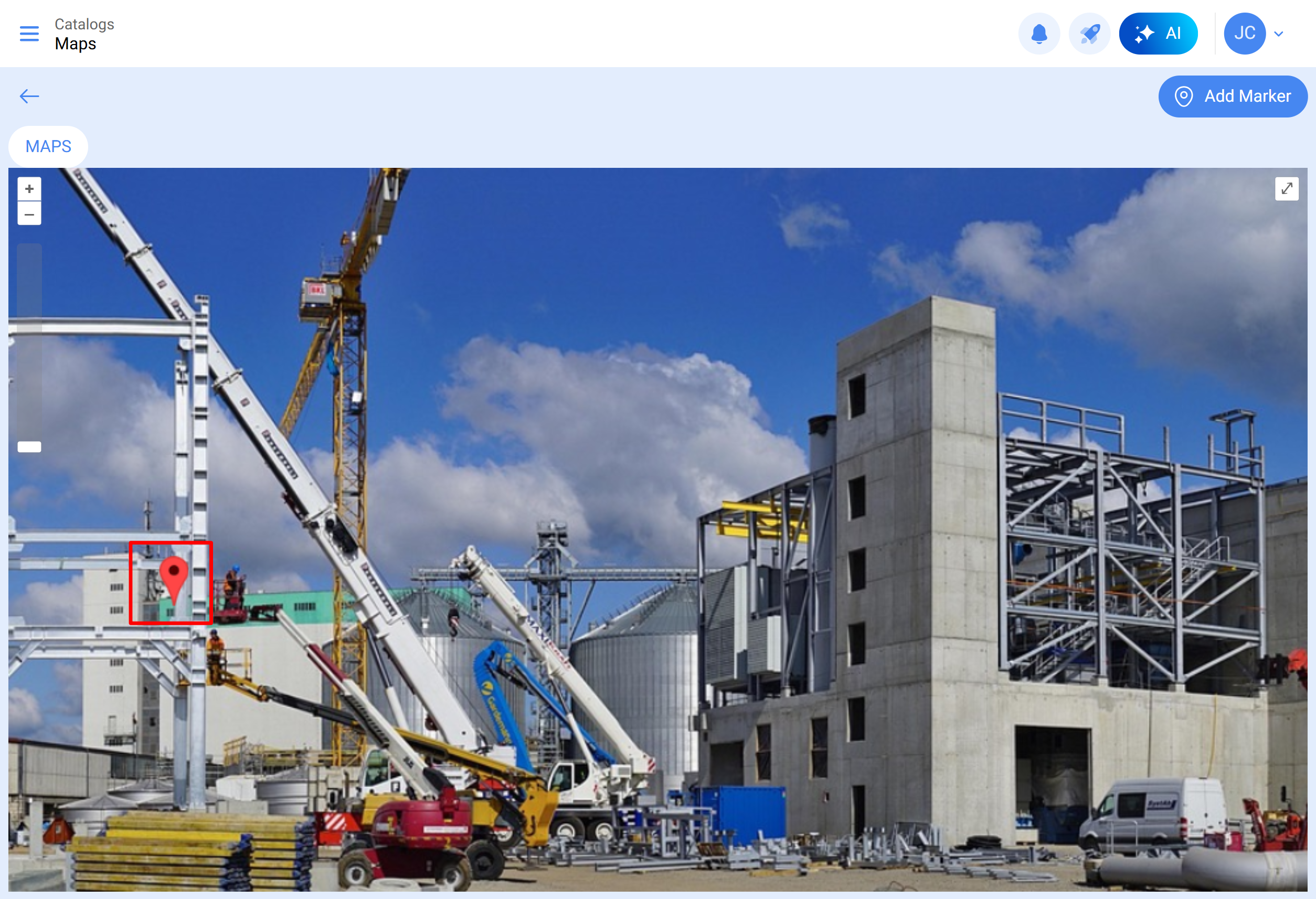 Os marcadores são elementos gráficos utilizados para posicionar e identificar ativos específicos (previamente registados no catálogo de ativos) dentro de um mapa ou layout.