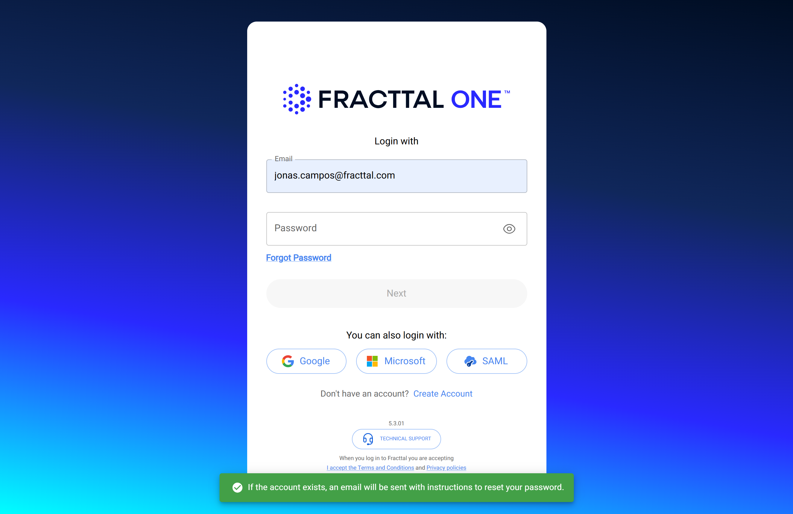 Aceda à sua caixa de entrada (ou pasta de SPAM) e procure um e-mail de no-reply@fracttal.com.