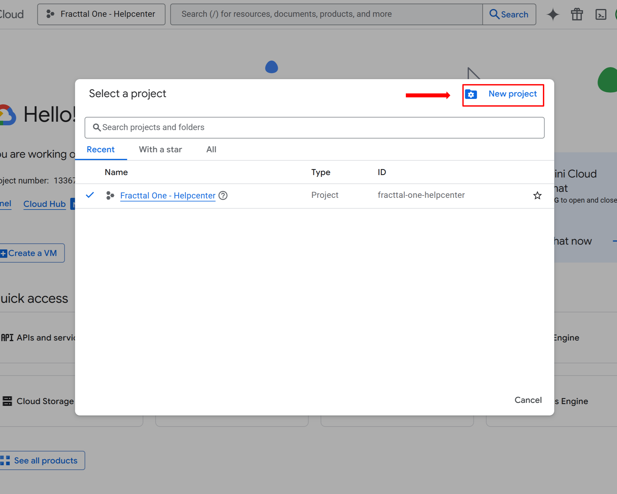 Aceda ao GCP com a sua conta Google e clique no seletor de projetos na barra superior, junto ao logótipo..