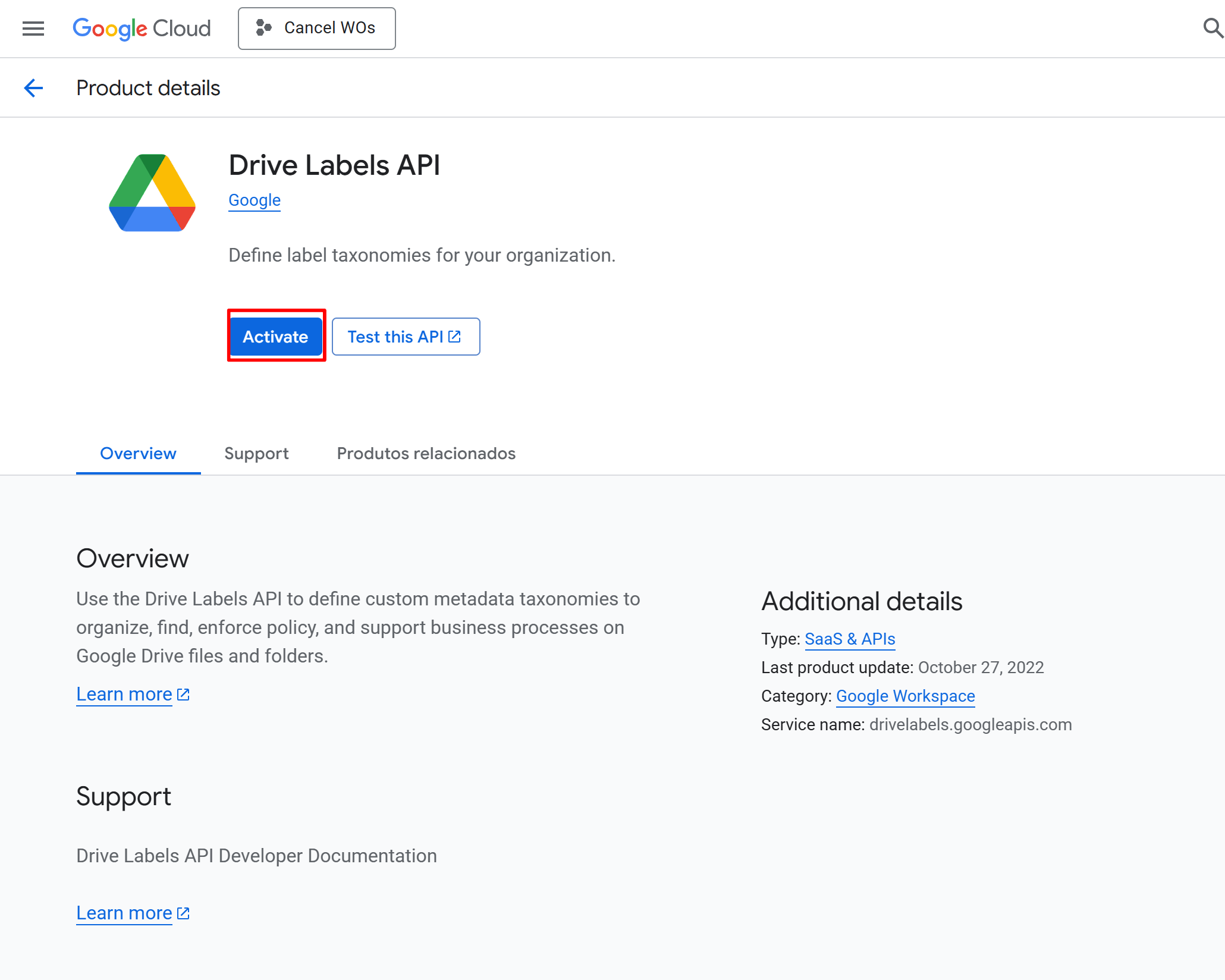 É necessário ativar as APIs que permitirão ao Fracttal ler e escrever nos serviços do Google Drive e Google Sheets.