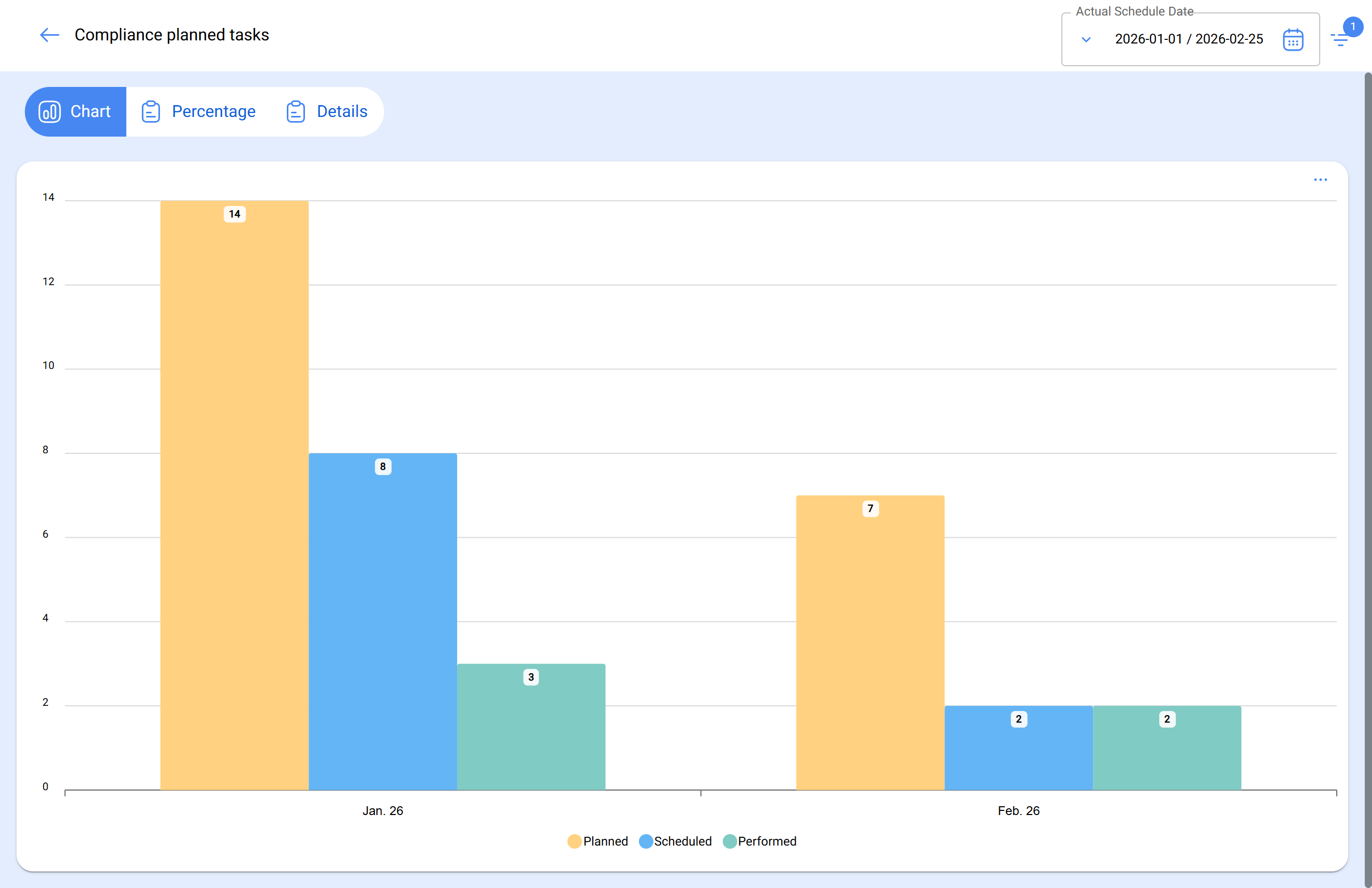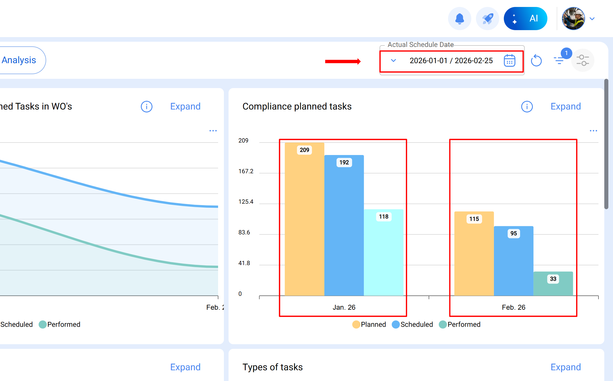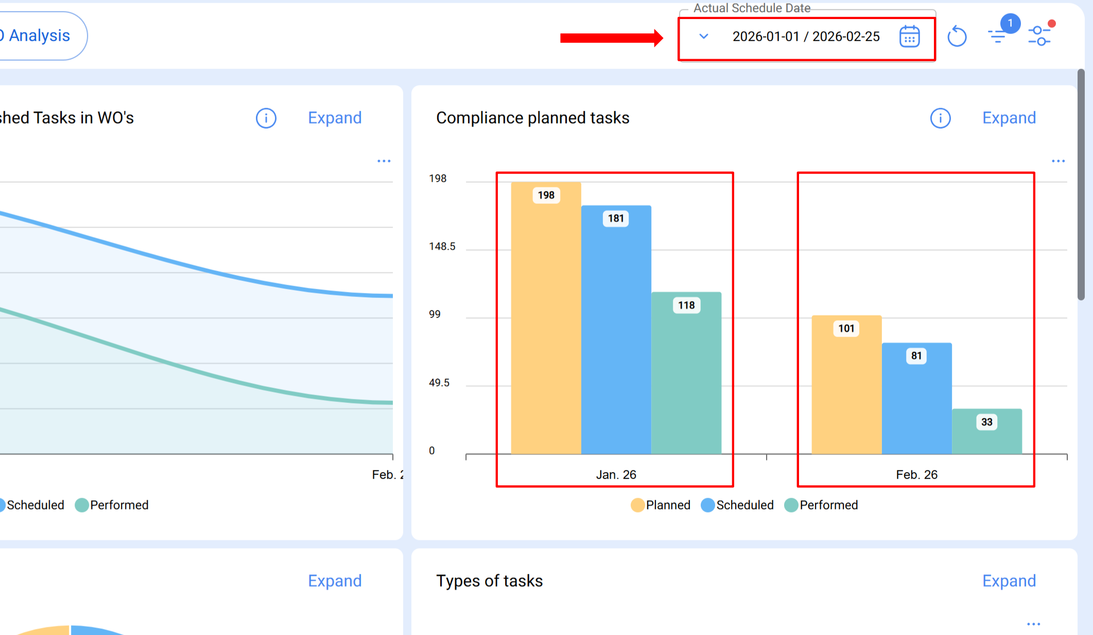 Para uma compreensão detalhada da análise de cumprimento de tarefas planeadas sob um esquema de restrição mensal, consulte o artigo: Análise de cumprimento de tarefas planeadas no Fracttal One