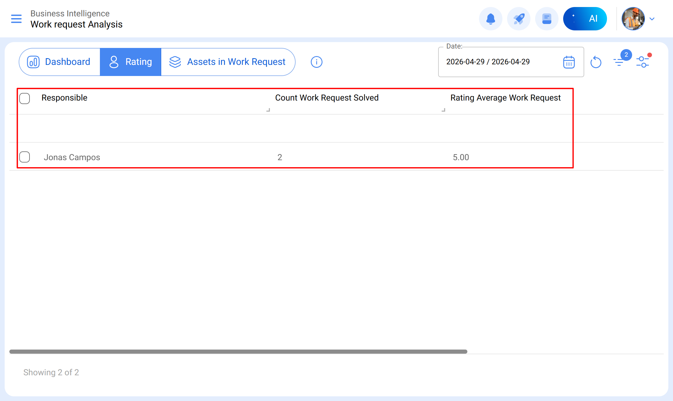 Na secção de classificação do módulo de Inteligência de Negócios, os utilizadores podem consultar métricas detalhadas sobre o desempenho dos agentes na gestão de solicitações, permitindo obter uma visão mais clara e precisa do seu rendimento.