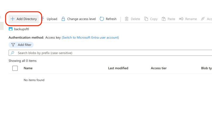 Clique em Adicionar Diretório, atribua um nome ao diretório, por exemplo "bd-respaldos".